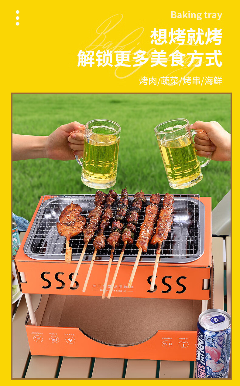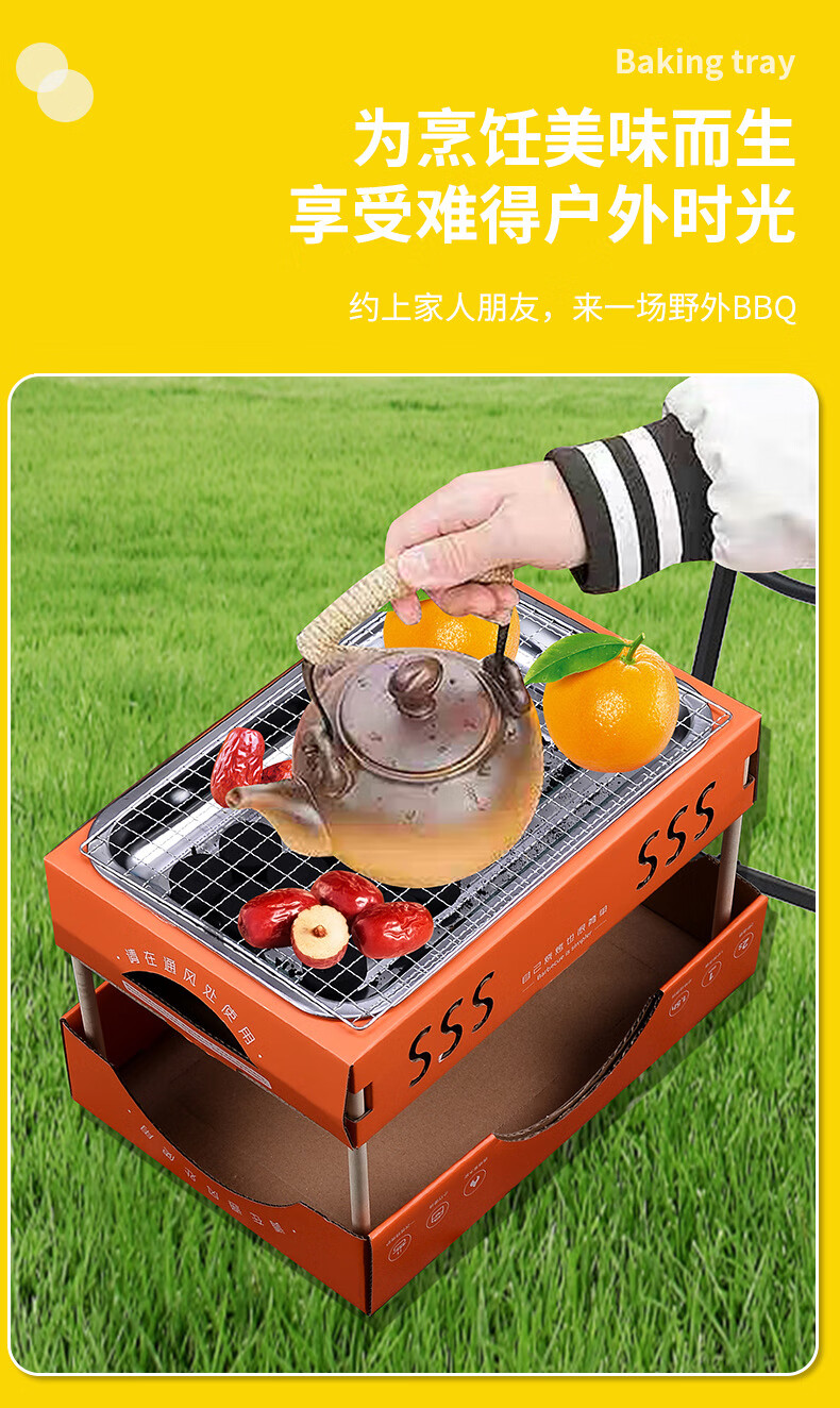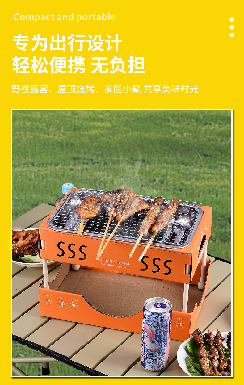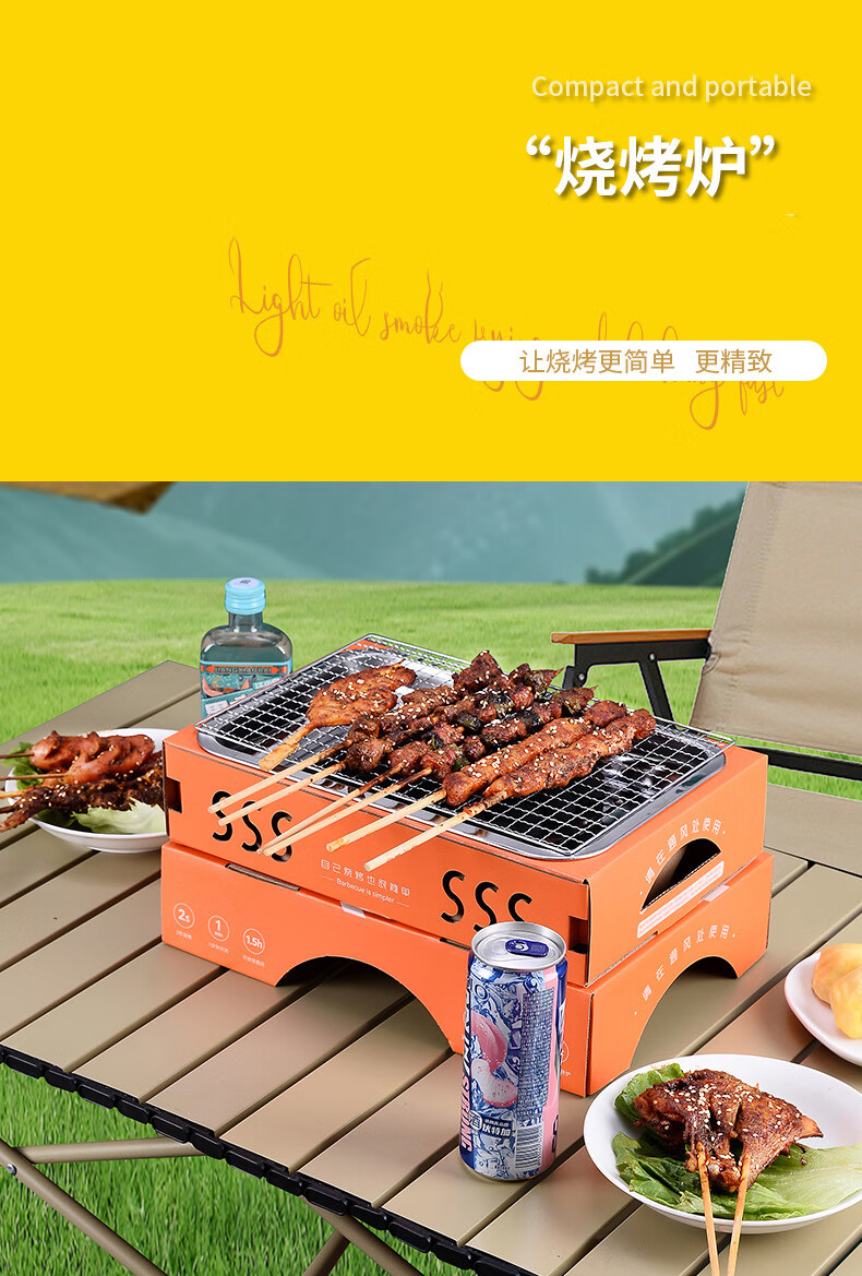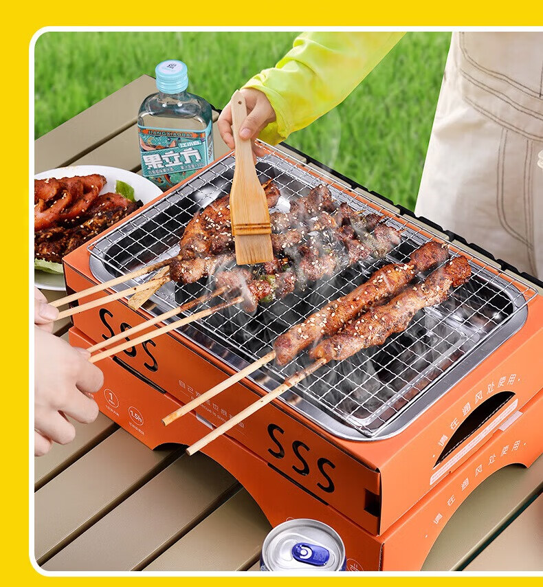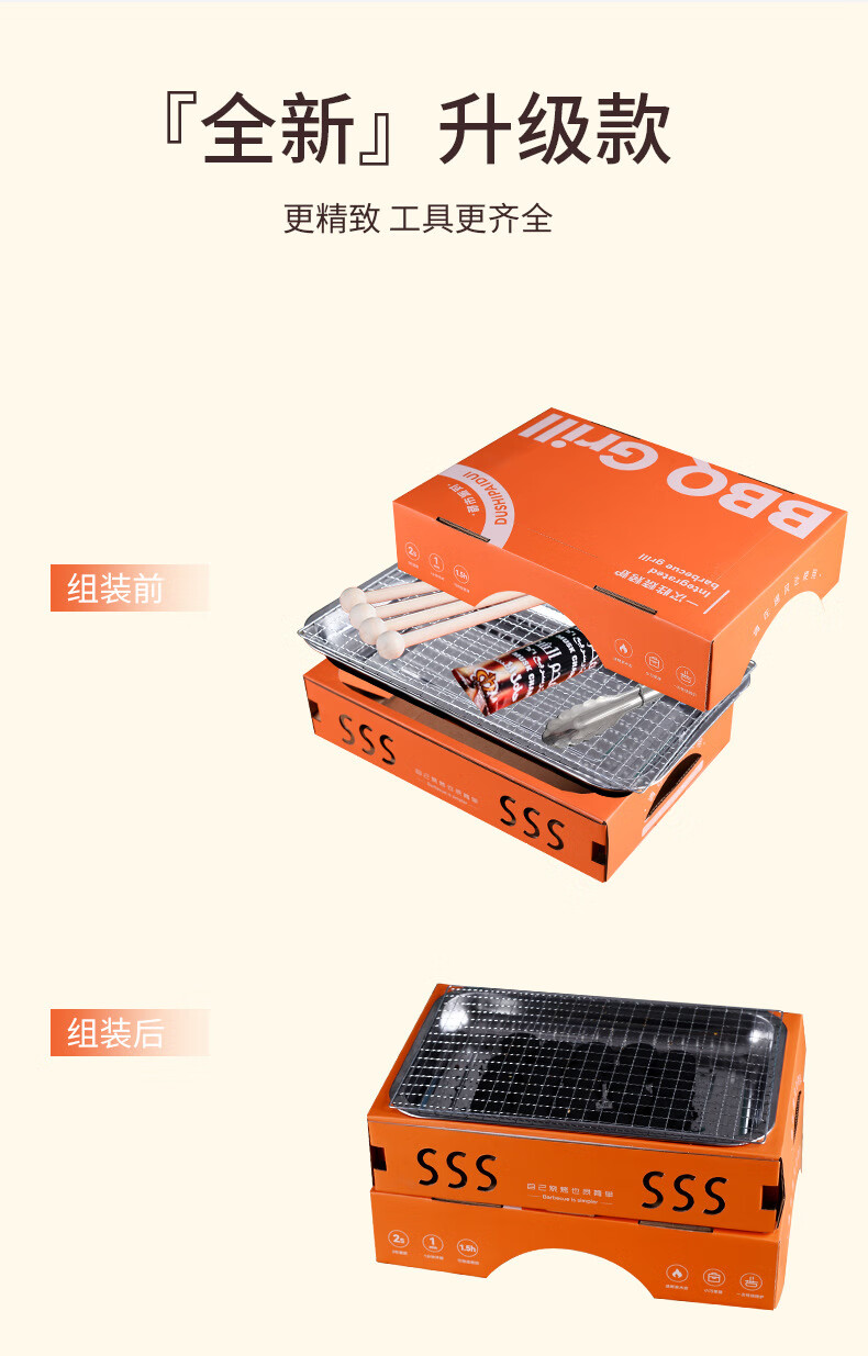 这个一次性烧烤架别看是便携式的,还是很好用的,安装简单,真不错
