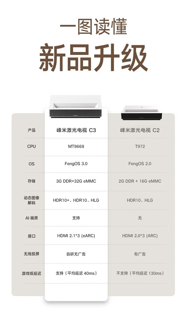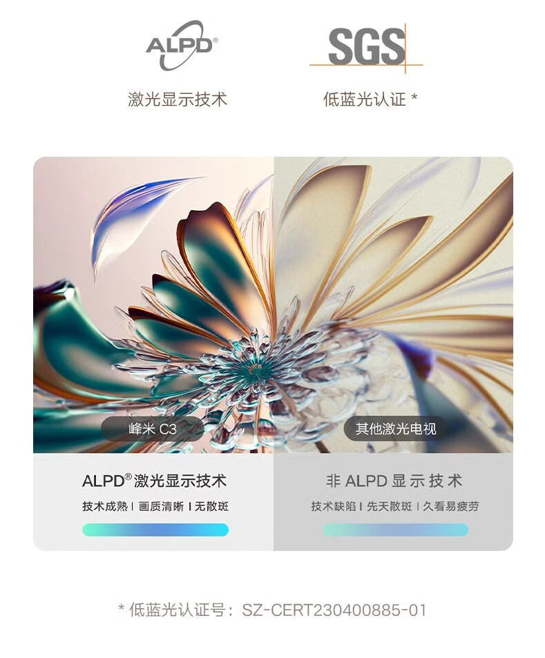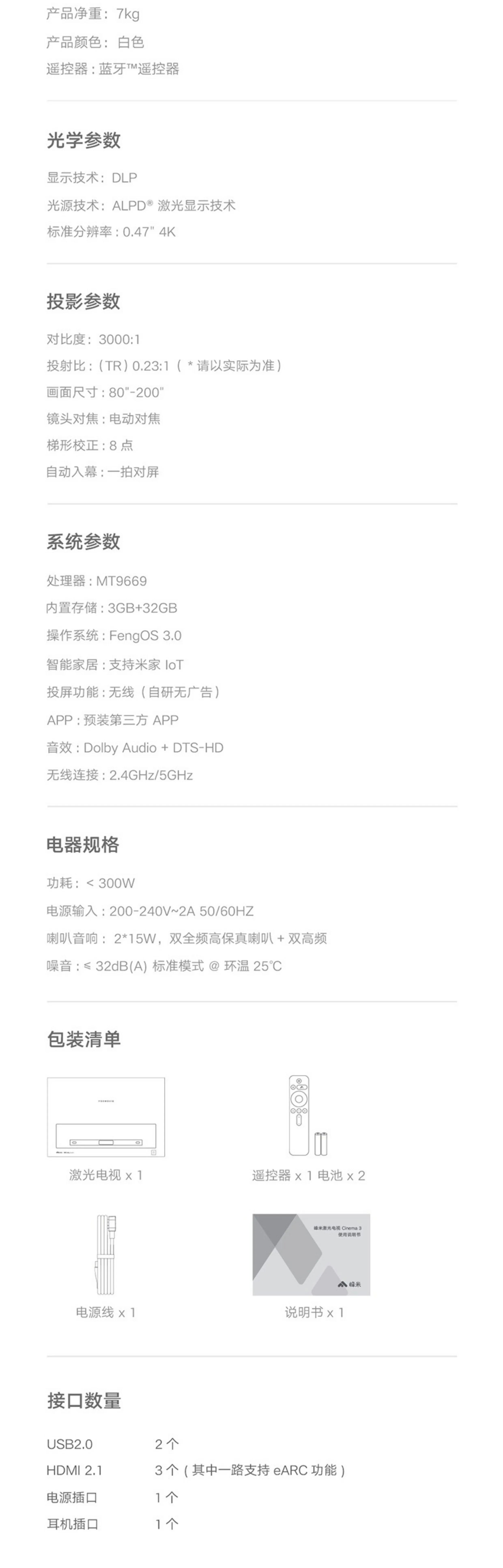 峰米C3激光电视短焦4K护眼高清投影仪无线投屏智能家庭影院全球海外版 峰米C3单机【全球海外版】