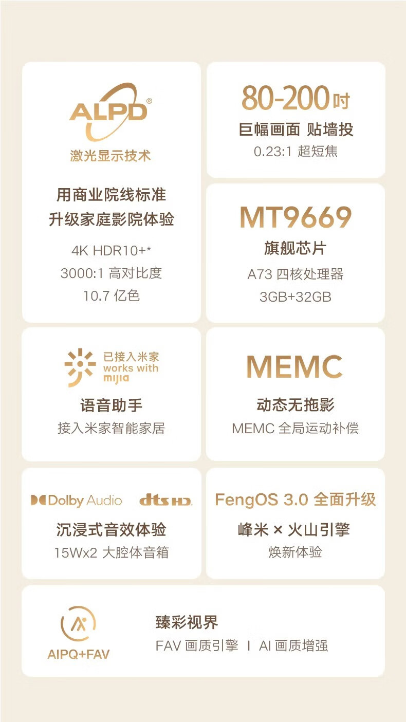 峰米4K高亮版超短焦投影客厅卧室投影机投影仪家庭影院超高清自动对焦八点矫正激光电视全套装 C3(影院级色准 4K) 标配+90寸激光超短焦菲涅尔软屏丨上门安装