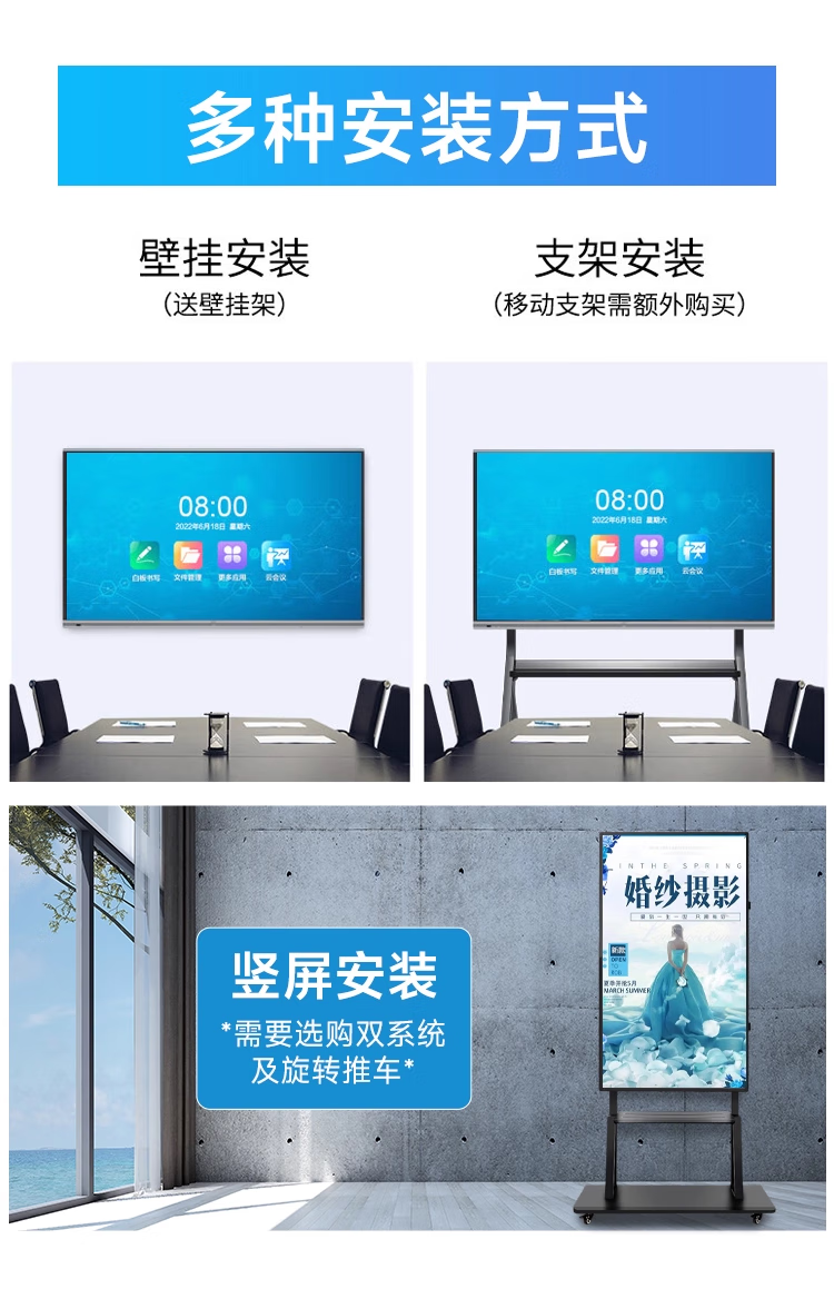 2025最新款米4K会议教学平板一体机85/100寸多媒体电子白板触控 75寸双系统款i7/8+256G+推车