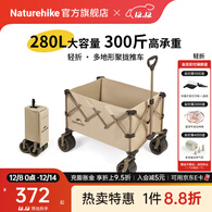 Naturehike挪客轻折全地形聚拢露营车宽轮折叠小推车野外摆摊快递购物手拉车 卡其色/ 280L 有刹车