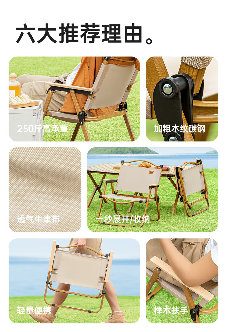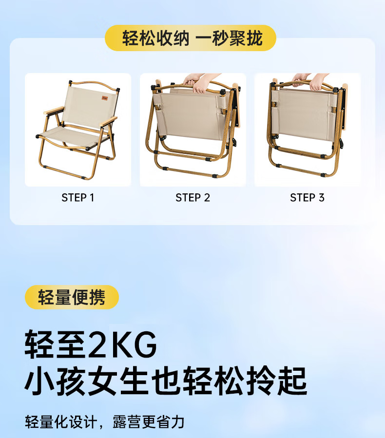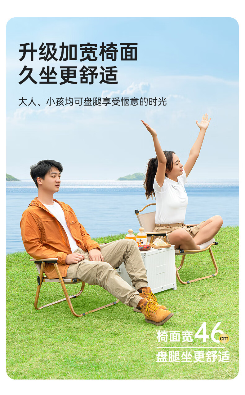 有次出门野餐,体验了一下克米特椅,坐着感觉支撑感不错,又是折叠,方便携带,就买了一个,这款高一些,价格实惠。