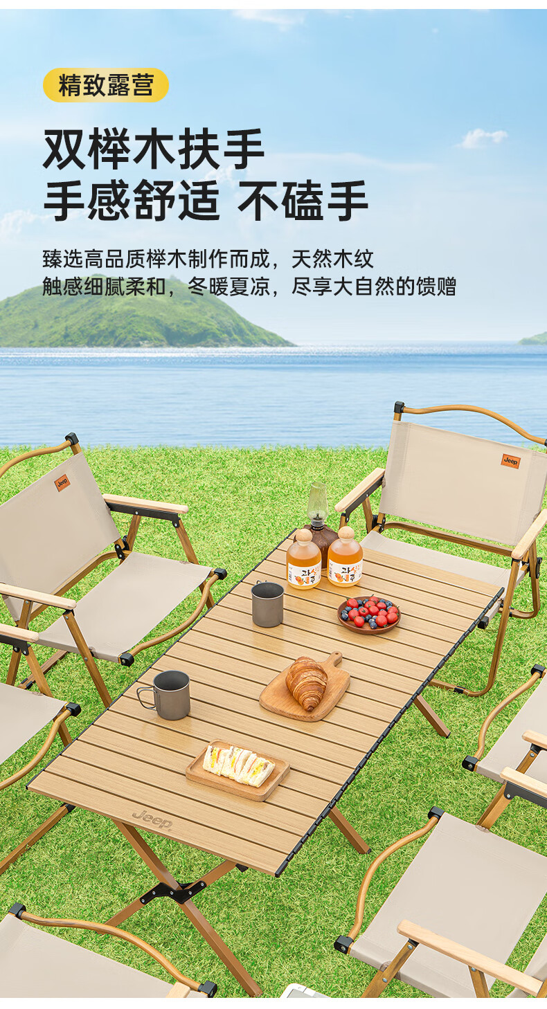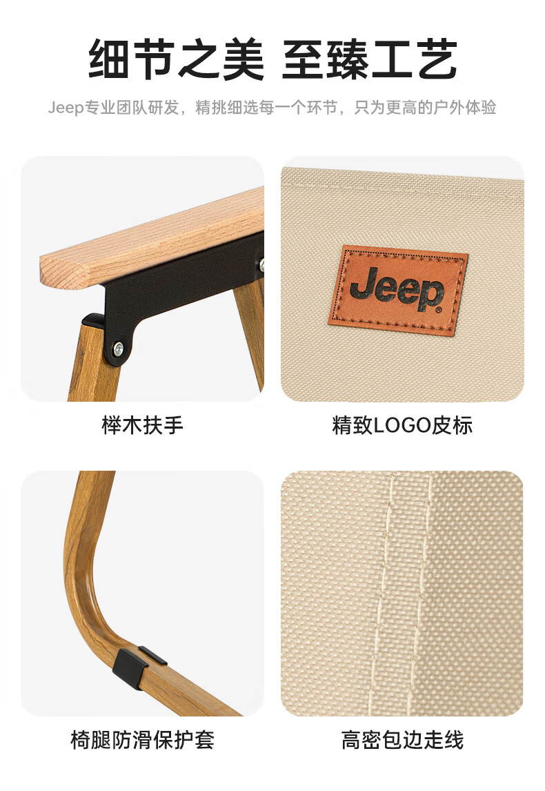 JEEP折叠椅子户外露营野餐钓鱼沙滩便携克米特椅户外桌椅装备用品 弯管克米特椅卡其色