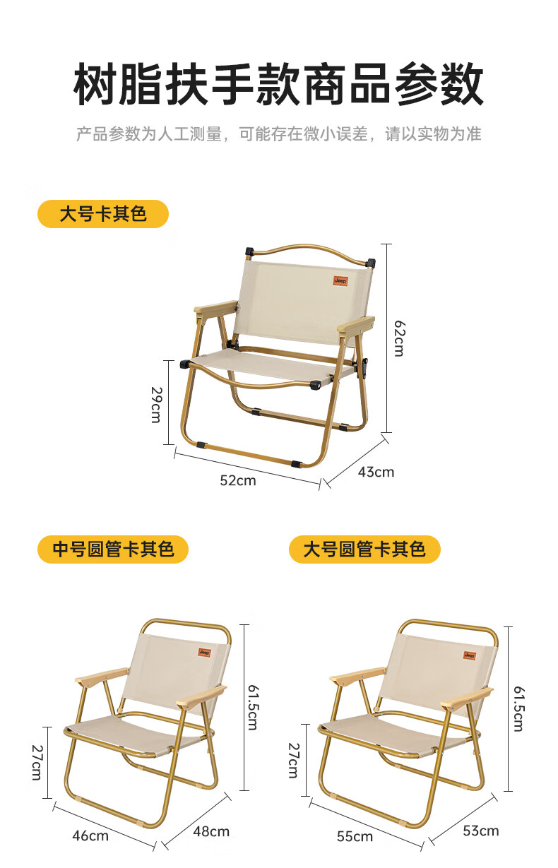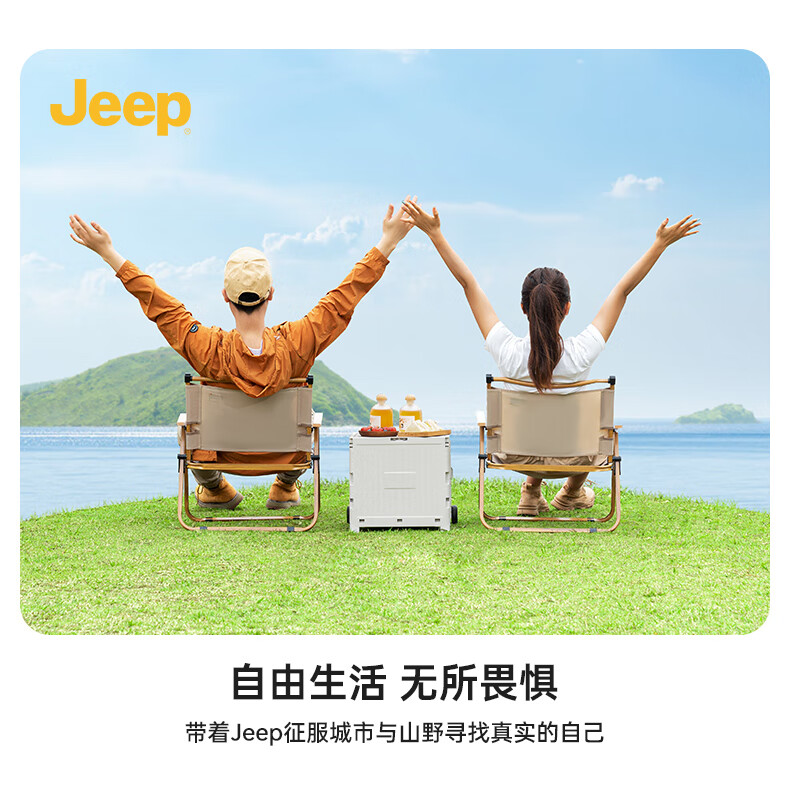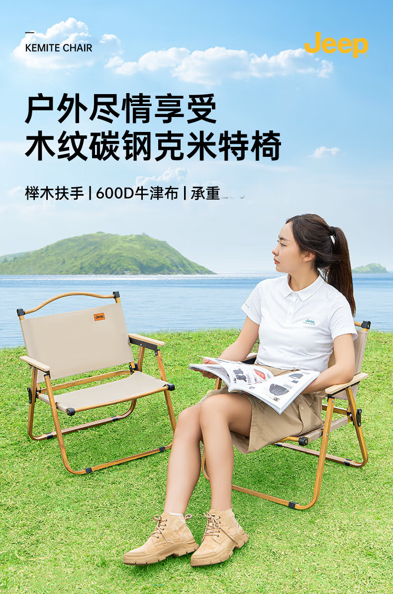 JEEP 户外折叠椅露营椅子户外椅子折叠便携露营椅沙滩椅克米特椅 大号卡其色【卡其色碳钢】克米特椅
