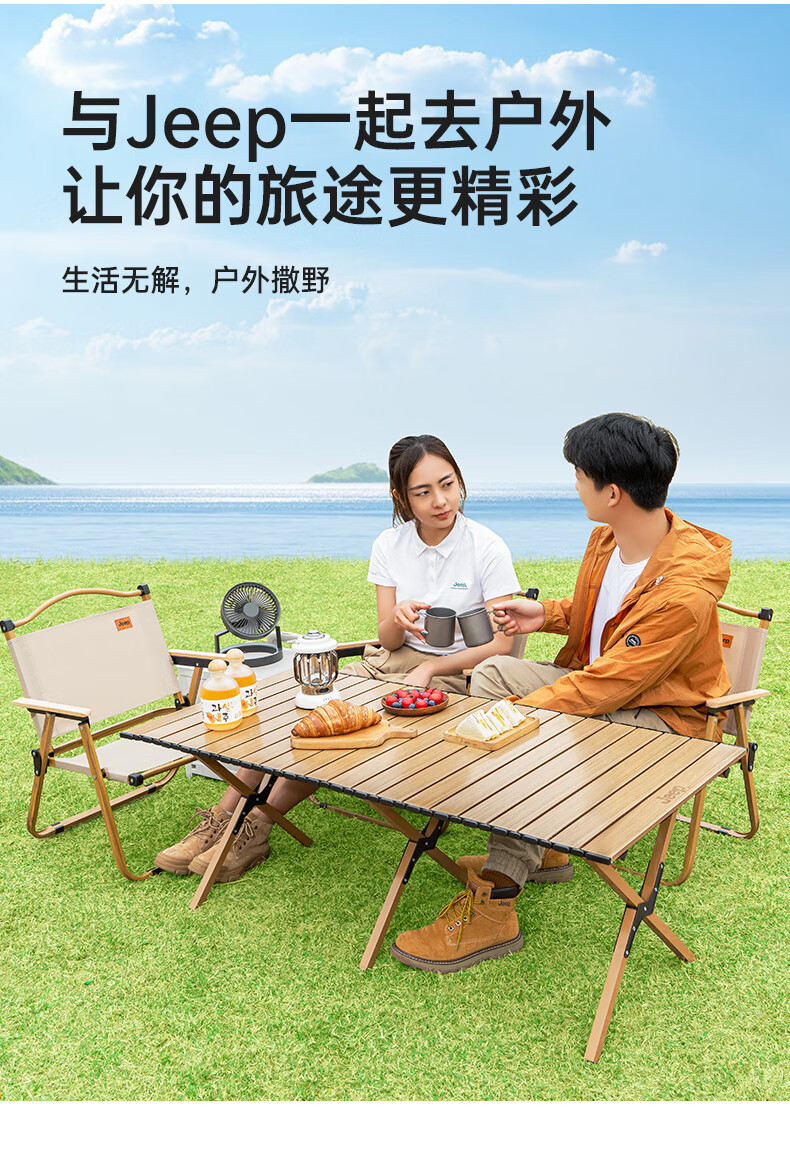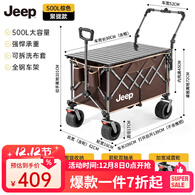 JEEP户外露营折叠车野餐车营地车露营装备便捷拖车推车购物 旅游买菜 米棕色【后开聚拢款】+桌板