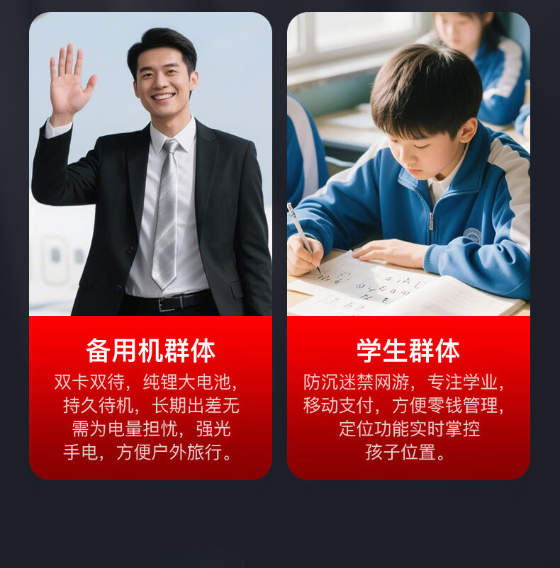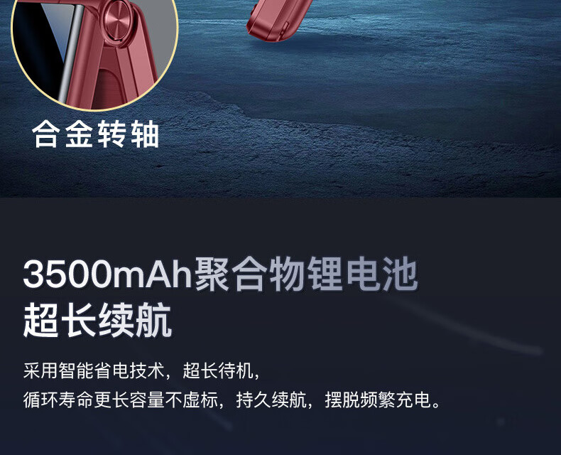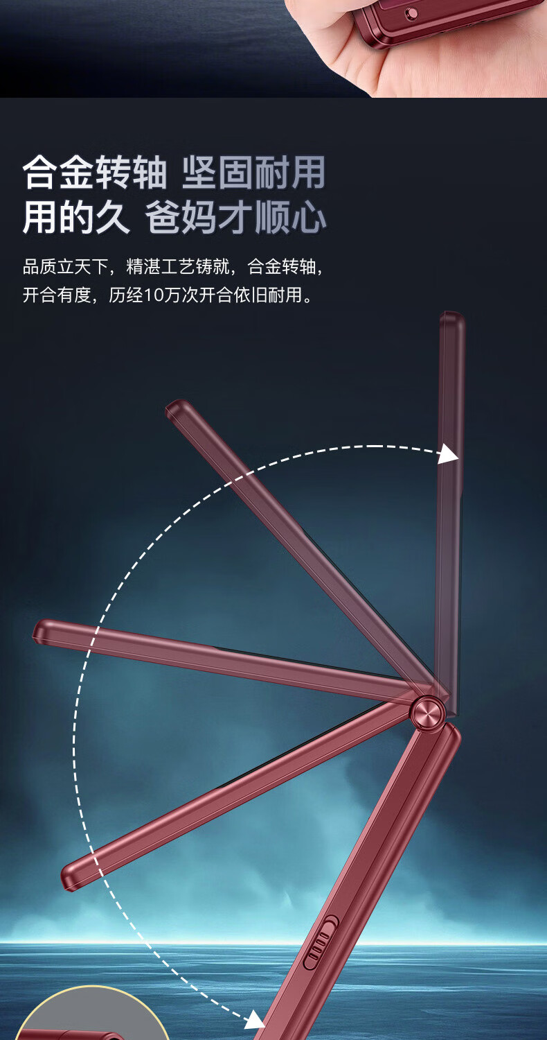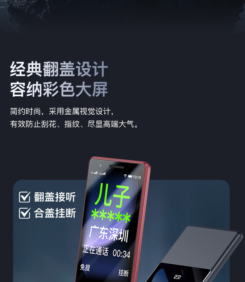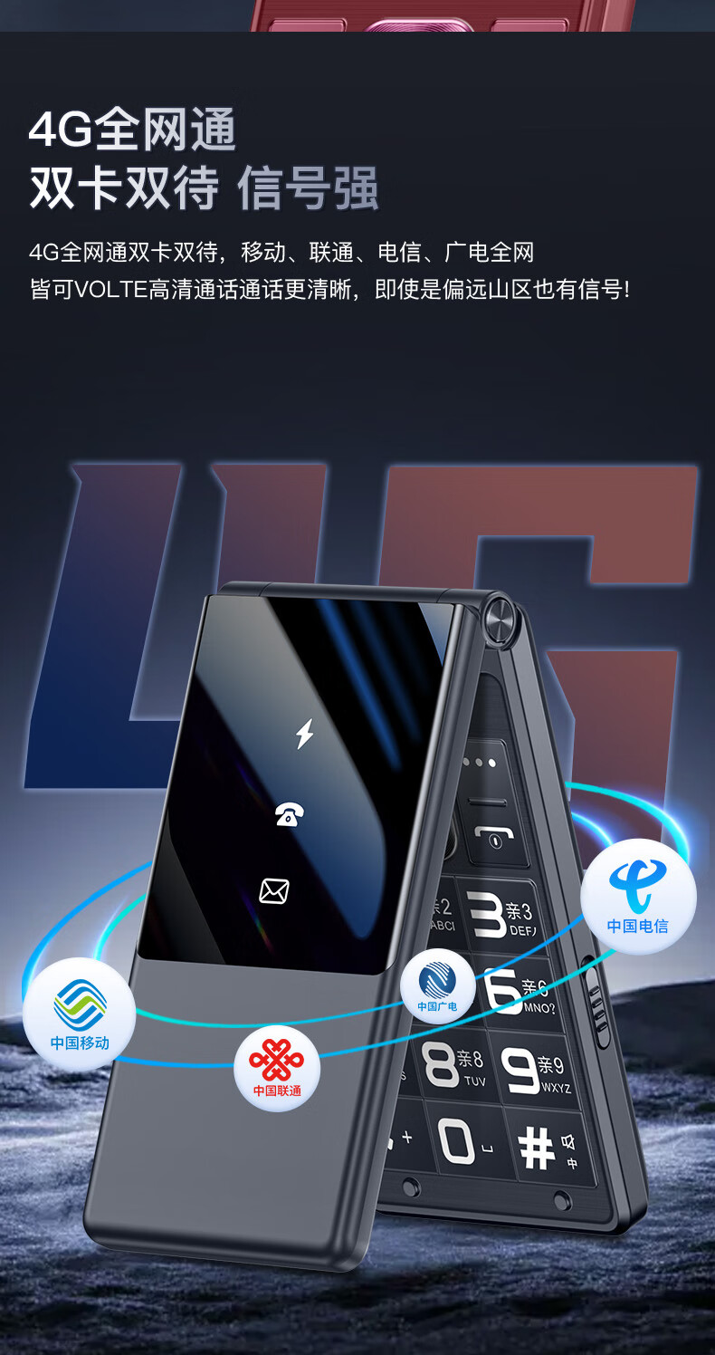 4G全网通让信号稳定,通话清晰;翻盖设计经典实用,还能防止误触。大字体、大按键让视力不好的老人操作毫无压力,超大音量再也不用担心听不清来电。超长待机功能太省心了,充一次电能用好几天,出门再也不怕没电。屏幕显示清晰,按键手感舒适,整体做工扎实。