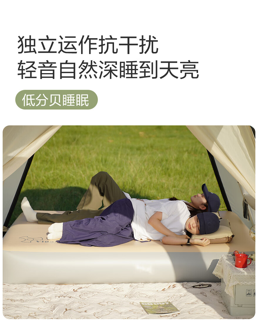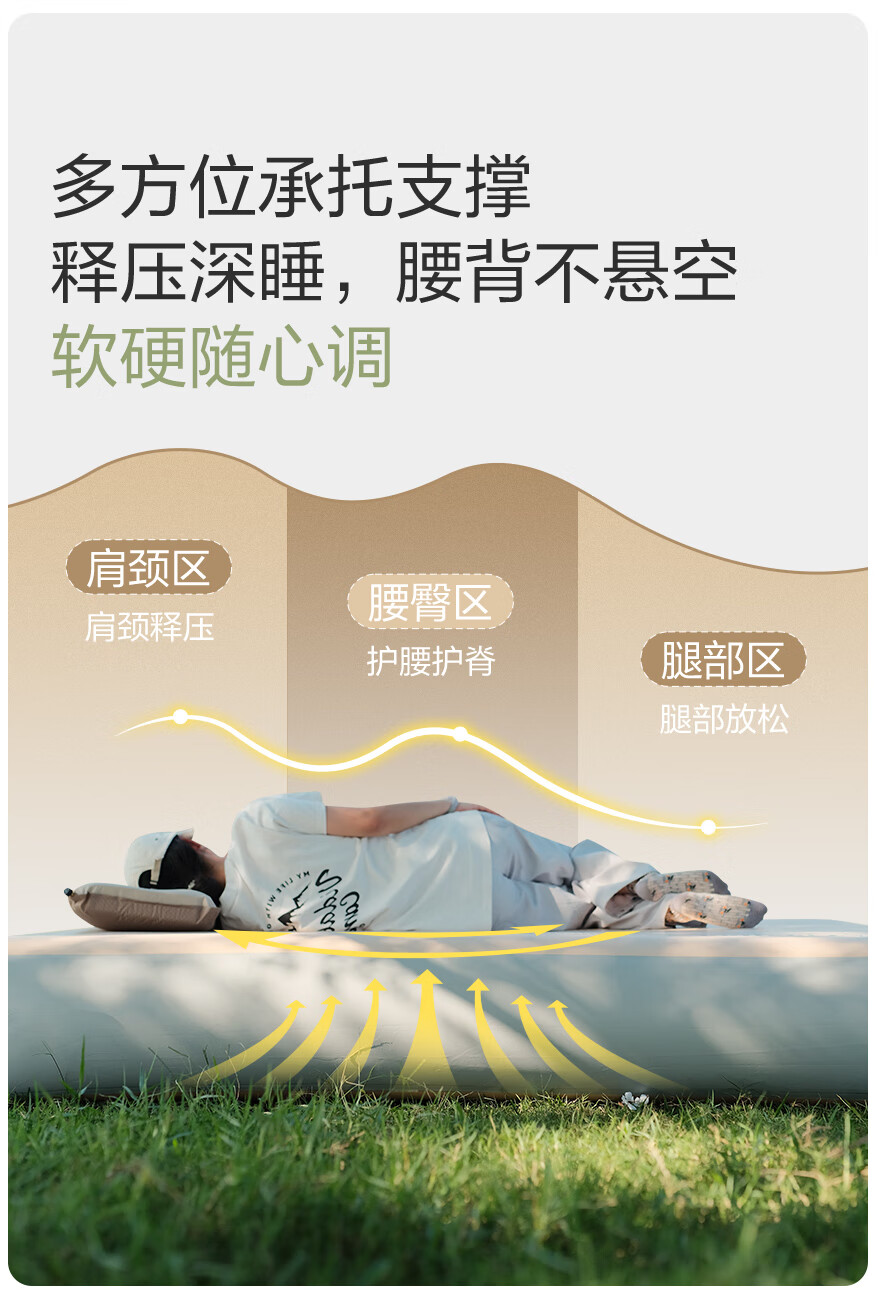 床充满气支撑力真的挺好,颜值也挺好,打满气放了一天还是气很足,整体充满不到 5 分钟,还是挺快的。味道很小,期待后面出去露营再体验