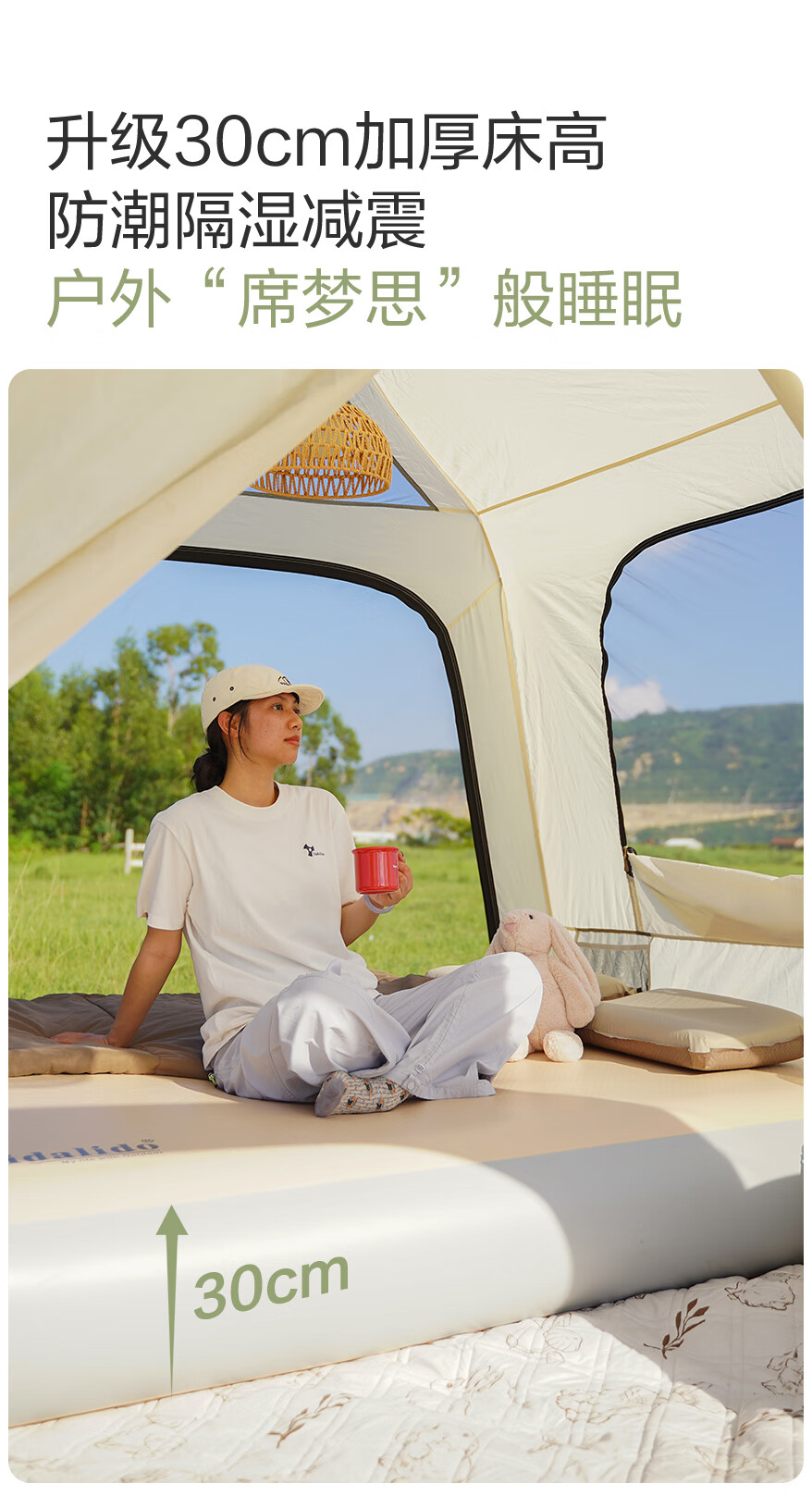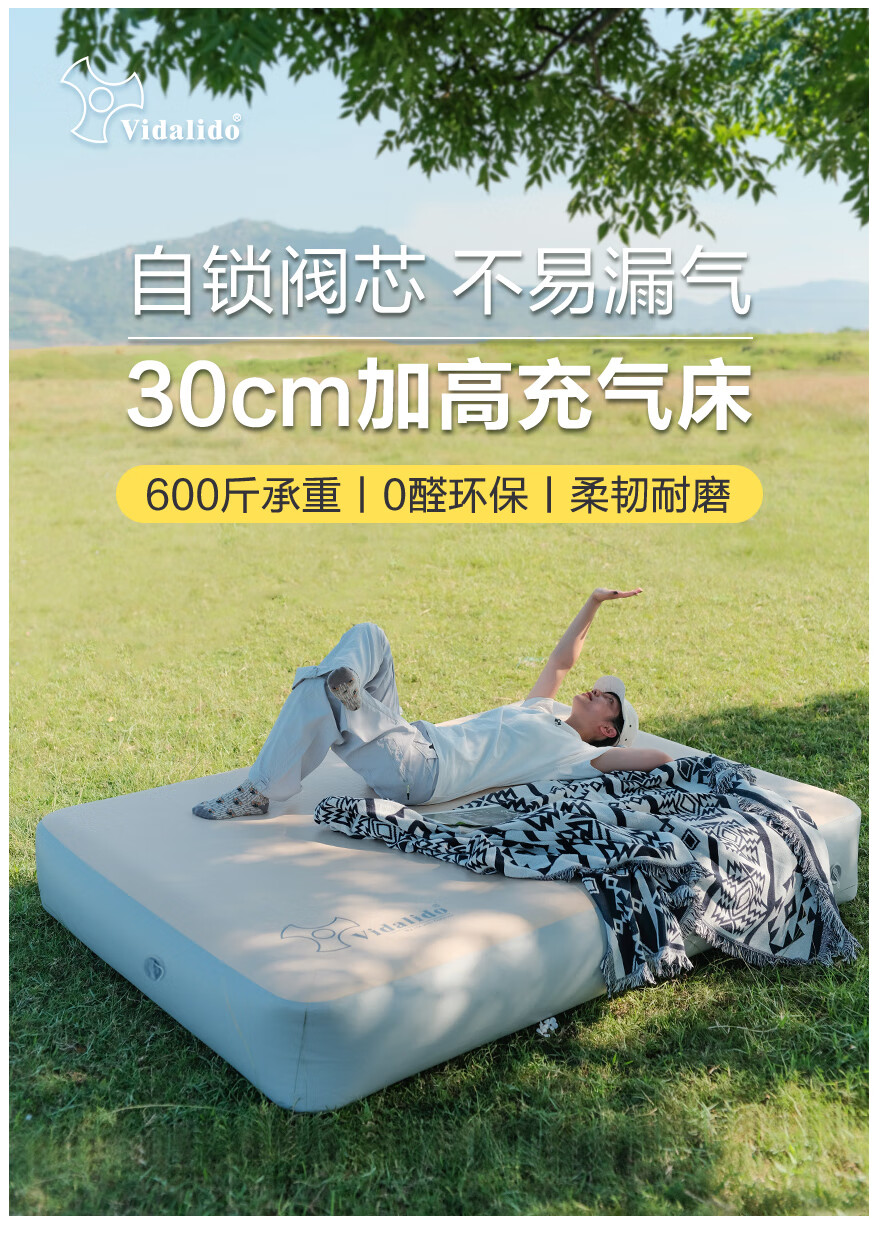 之前买了这个品牌的帐篷和天幕,感觉质量不错,床垫一 上市就买了,收到后充气好很大,拉丝非常好,躺上面硬邦 邦,国庆刚好用上,露营了四天,一点都没漏气,非常棒, 配套的床笠一出来,就又买了,套上非常完美,好用,目前 来看值得购买,希望能用久点,相信维达利多这个牌子