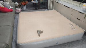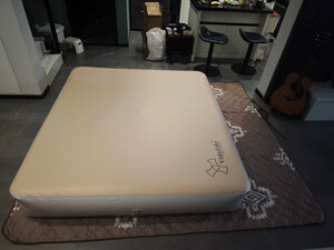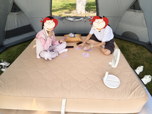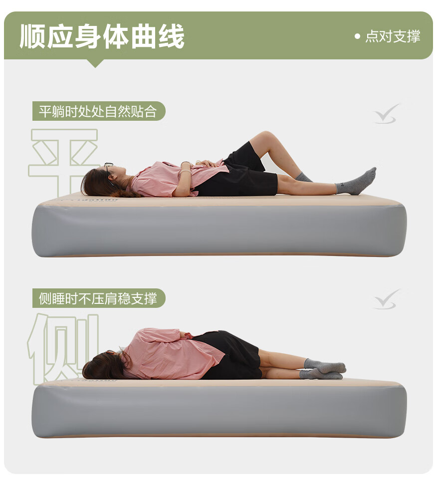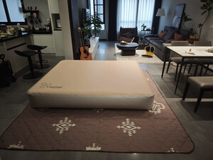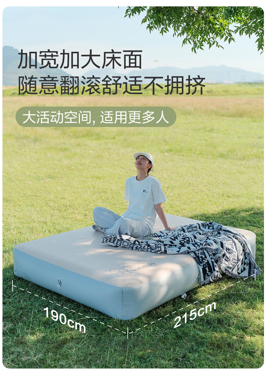 床垫非常好用,拉丝的充气后确实非常坚挺舒适,跟睡在家里的大床没啥区别,别家很少有这么大尺寸的,爱了!客服非常nice,好评!(图为山脊➕铺了床单的床垫,山脊也很好用!)