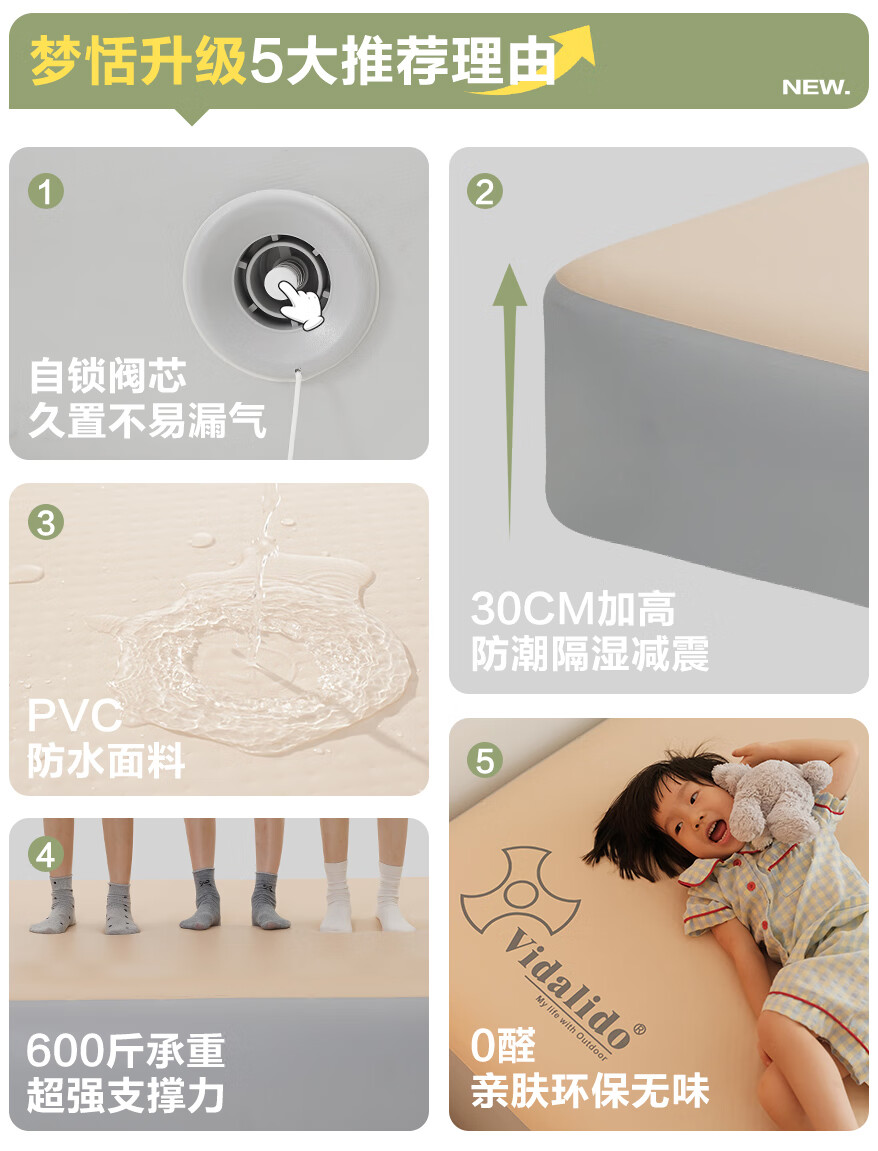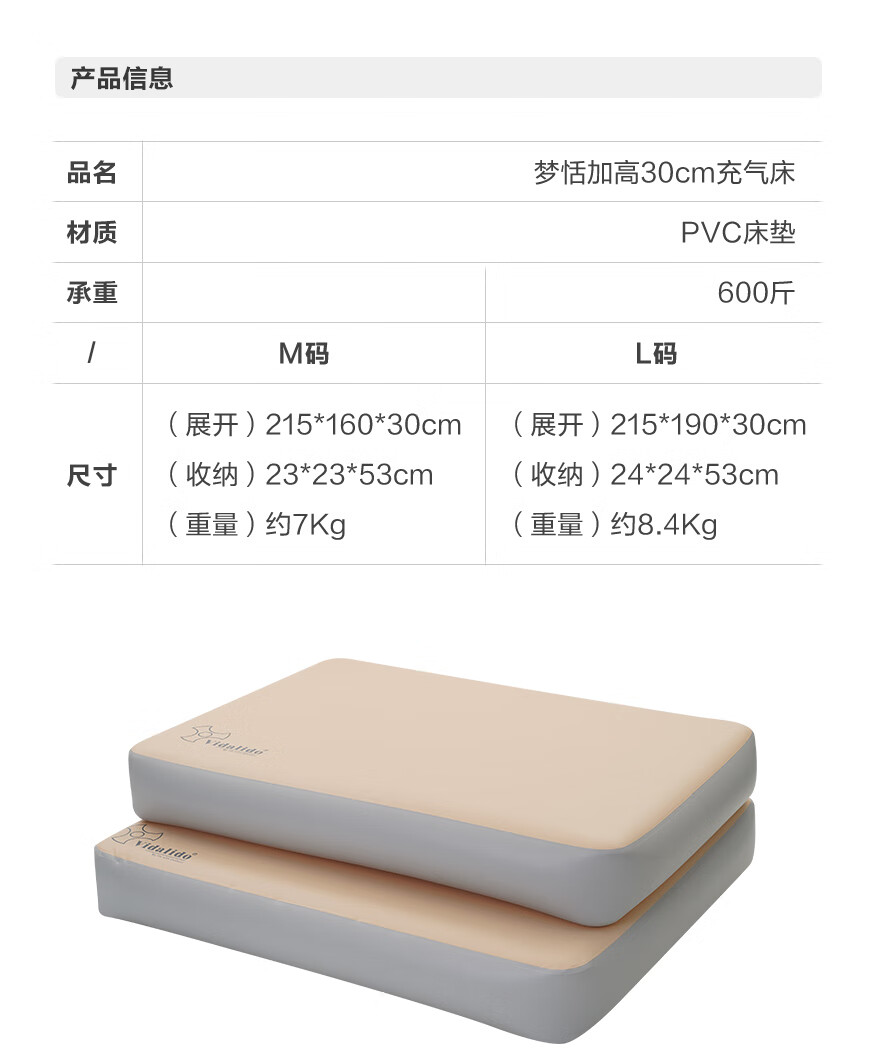 很满意呀,维达利多还是听劝,这次升级了高度,换了内置泵,长度宽度也加了,买的L号,一家三口随便怎么睡,配上我的维达利多地平线帐篷,完美!等出去露营还来追评。还要表扬18客服,很有耐心,nice!