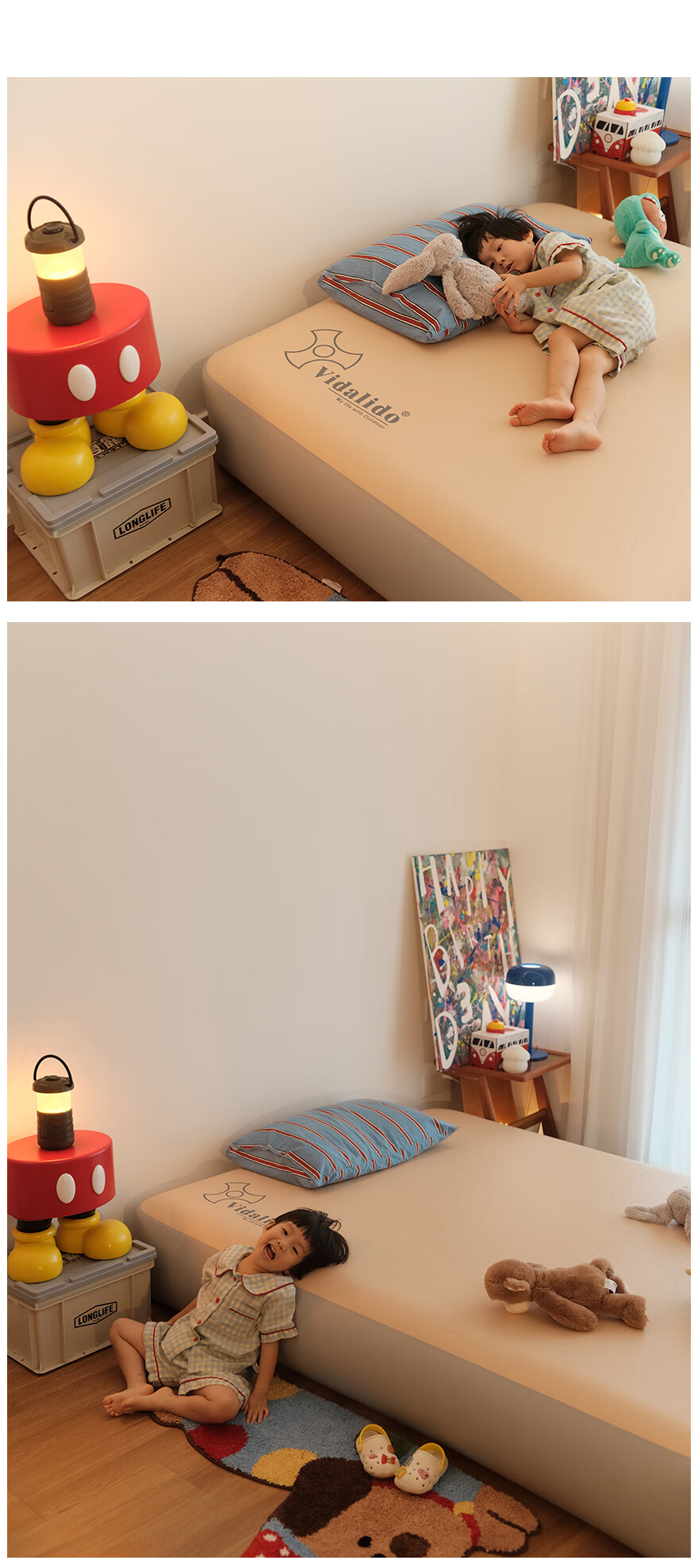 之前一直考虑塔吉比拉丝床垫,后来朋友推荐了维达利多这款拉丝床垫,尺寸比塔吉比的大一圈,正好一家三口睡不挤,看评论塔吉比2米剩1米8的床垫睡二大一小可能还有点挤。