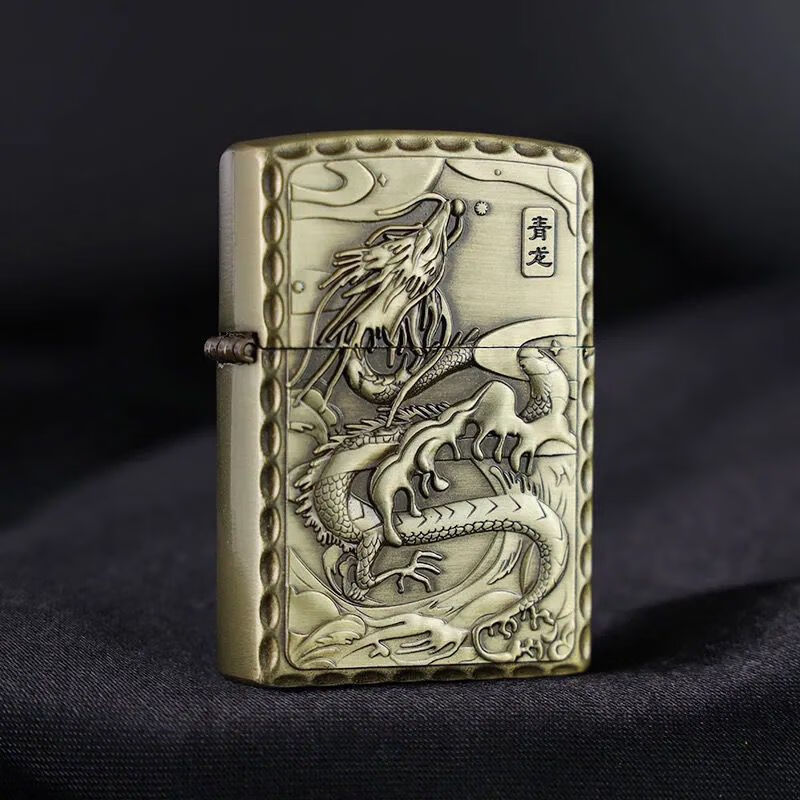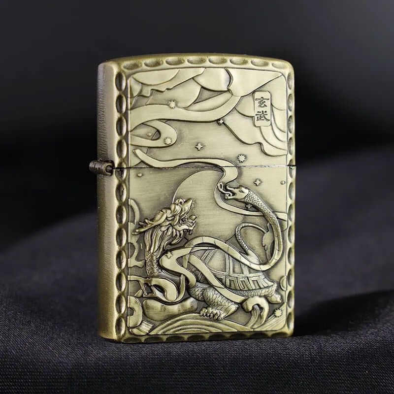 ZKHE(大捡漏)煤油打火机处理复古青铜色防风个性老式怀旧点烟器潮 玄武 +25ml煤油火石棉线