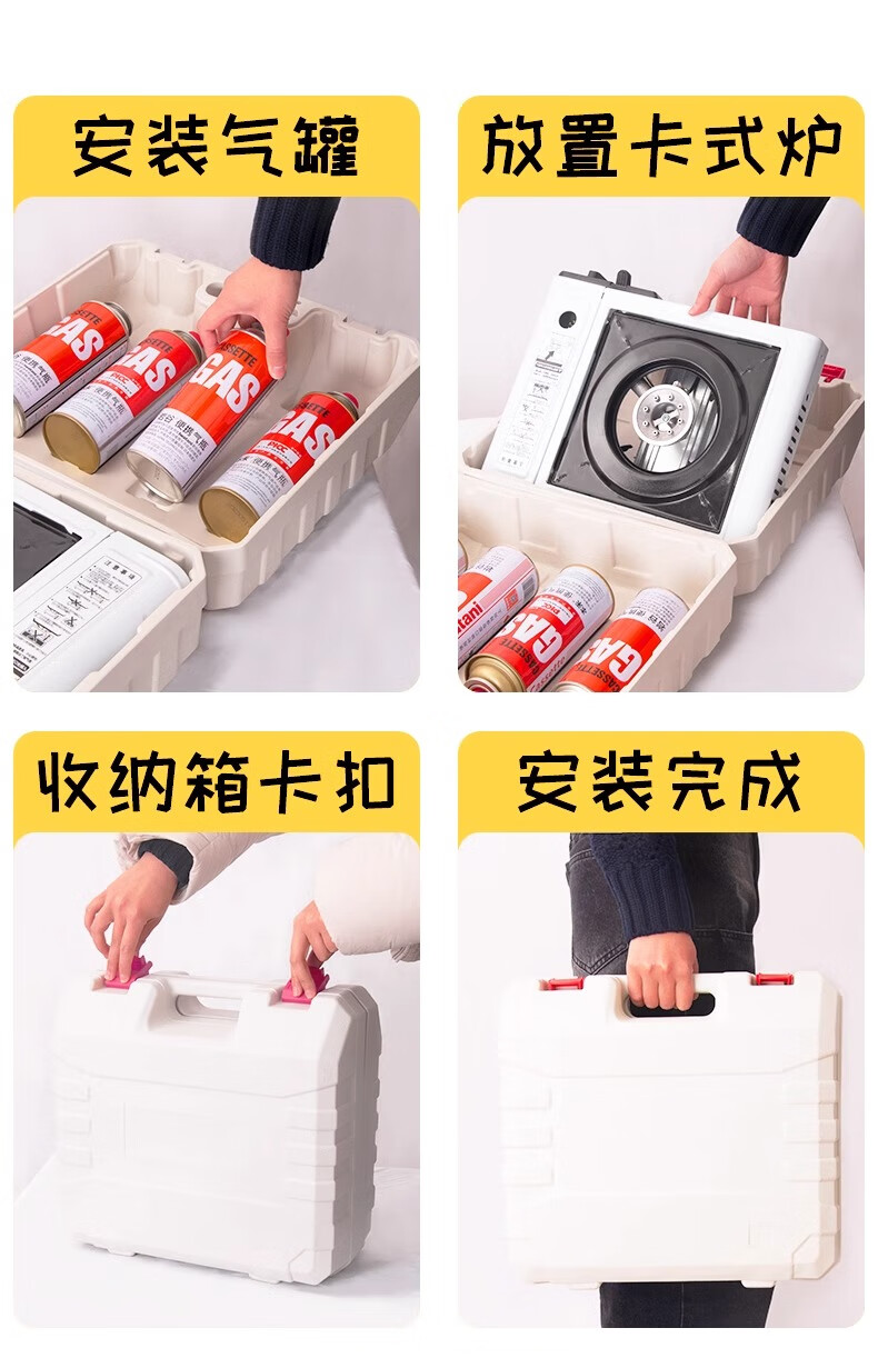 首先这个箱子还是非常结实的,也不怕淋雨。其次我觉得里面的卡式炉用起来也非常的方便,火力也还可以。这款卡式炉也非常小巧。我已经用过好几次了,在打火的时候也很容易着,嗯,也不太费气。赞一个。