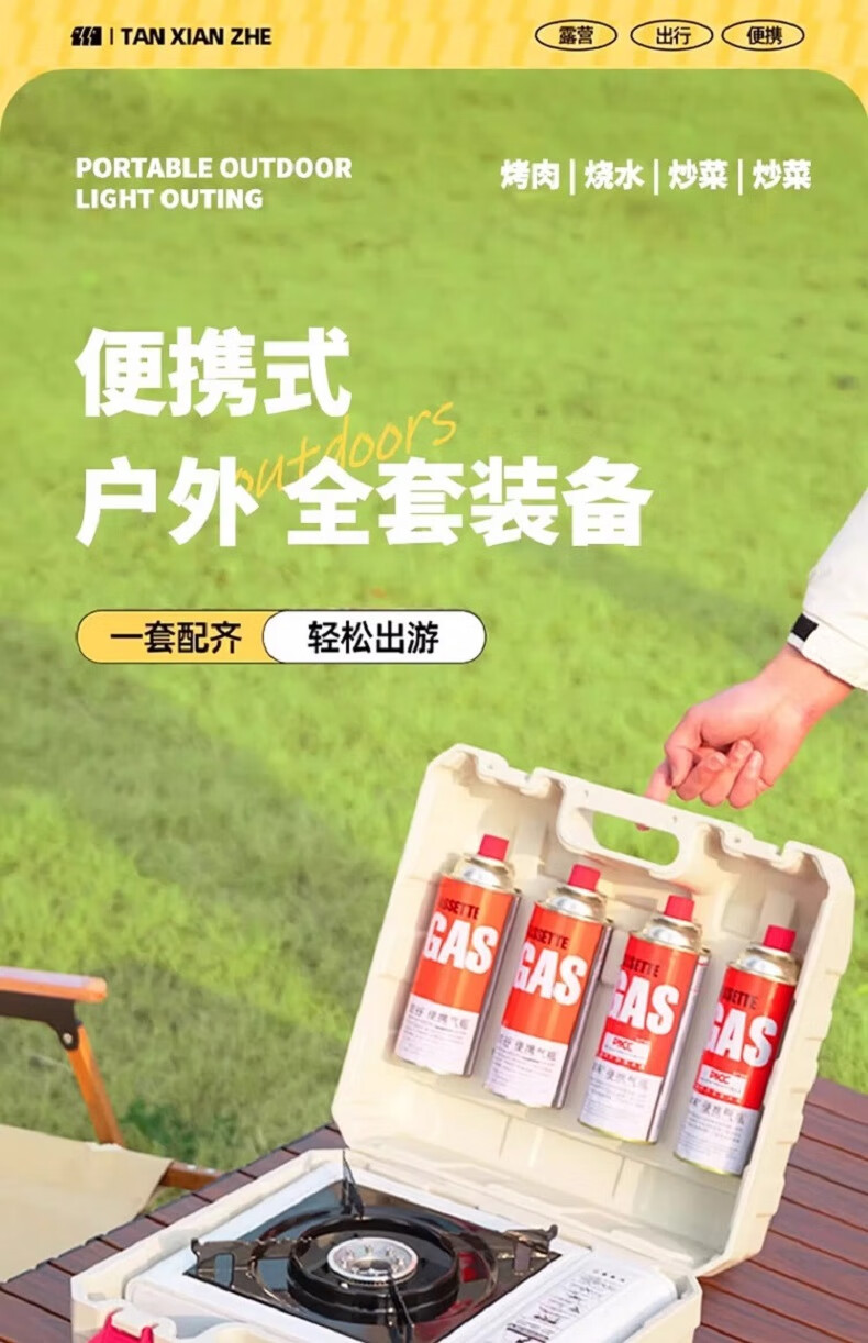探险者(TAN XIAN ZHE)卡式炉户外野外炉具炊具卡斯炉一体便携式卡磁煤气瓦斯露营燃气灶 【全套配齐】店长推荐80%选择