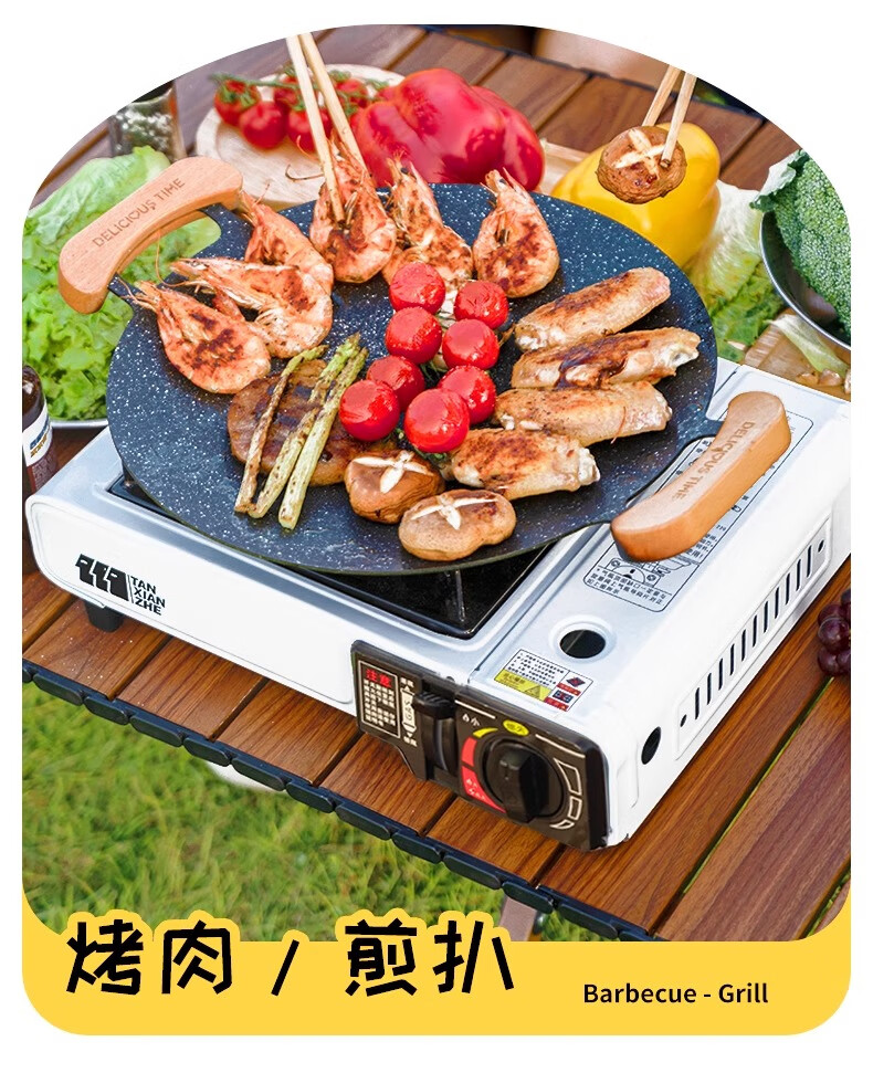 探险者(TAN XIAN ZHE)围炉煮茶烤盘烧烤盘烤肉盘韩式烤肉煎烤盘卡式炉家用麦饭石烤肉锅 33CM明火款【榉木防烫把手】