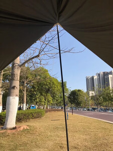 首次使用!黑胶款防光性挺好的,人在下面感觉很舒适!终于可以轻松地开展户外活动了。12平方的适合小家庭,如果多少还是需要大面积的。