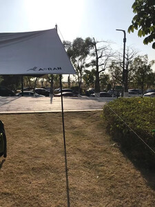 天幕颜色外观都很不错,3×4的尺寸一家三口露营基本够用,朋友聚会最好还是买大一号。材质稍微有点薄,不过黑胶的防晒效果确实要比涂银的要好,天幕下的光线稍显暗。