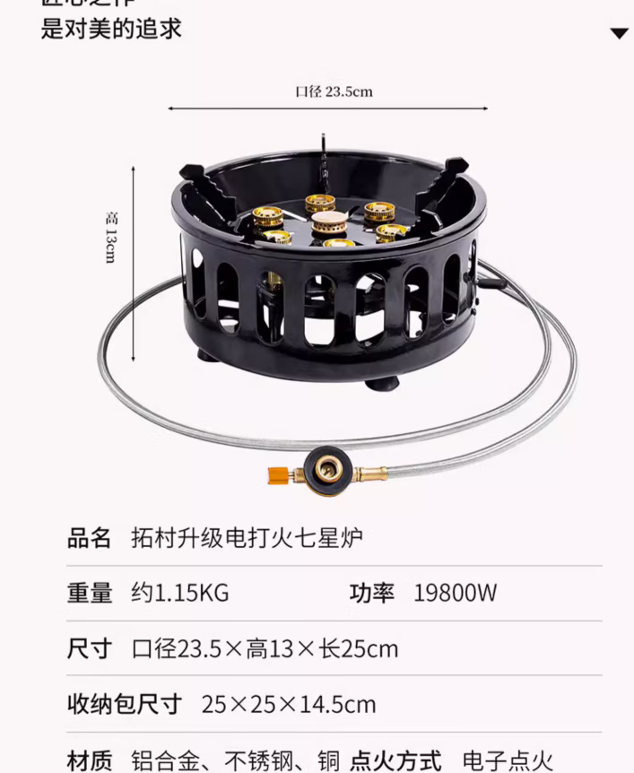 拓村户外七星猛火炉灶炉具瓦斯煤气高山露营野餐野外炊具露营装备 黑色七星猛火炉收纳包接头