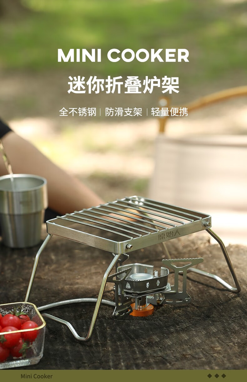 原始人不锈钢户外炉架可折叠锅架炉头架子炉具露营野餐野炊烧烤架 迷你烤架