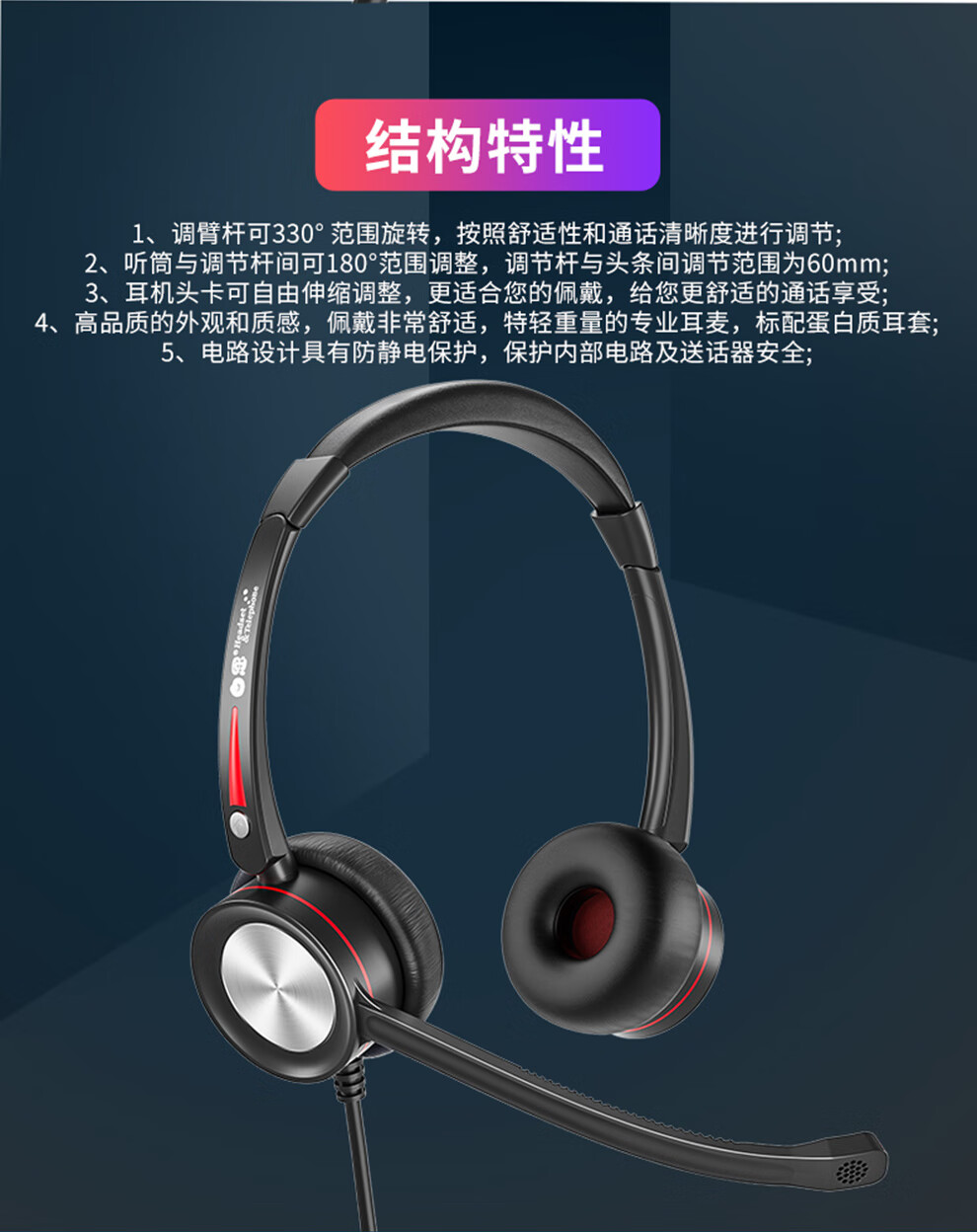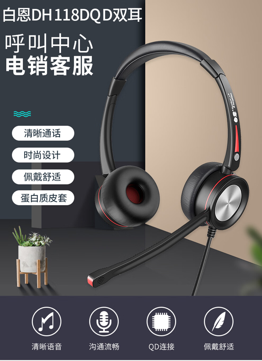 白恩DH118D双耳呼叫中心移动电信电销客服外呼头戴式话务员电话耳机耳麦佩戴舒适清晰通话 Type-c主动降噪调音静音插C口手机电脑使用
