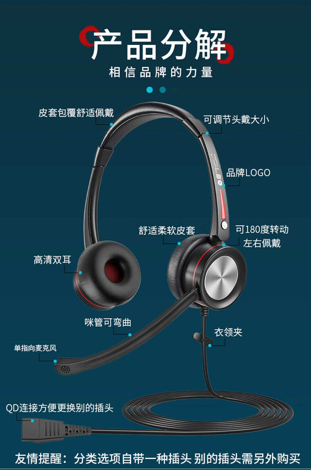 科特尔得龙(CALLTEL)话务耳机配件/QD线3.5mm双插线带线控 音量调节/静音 GN接口