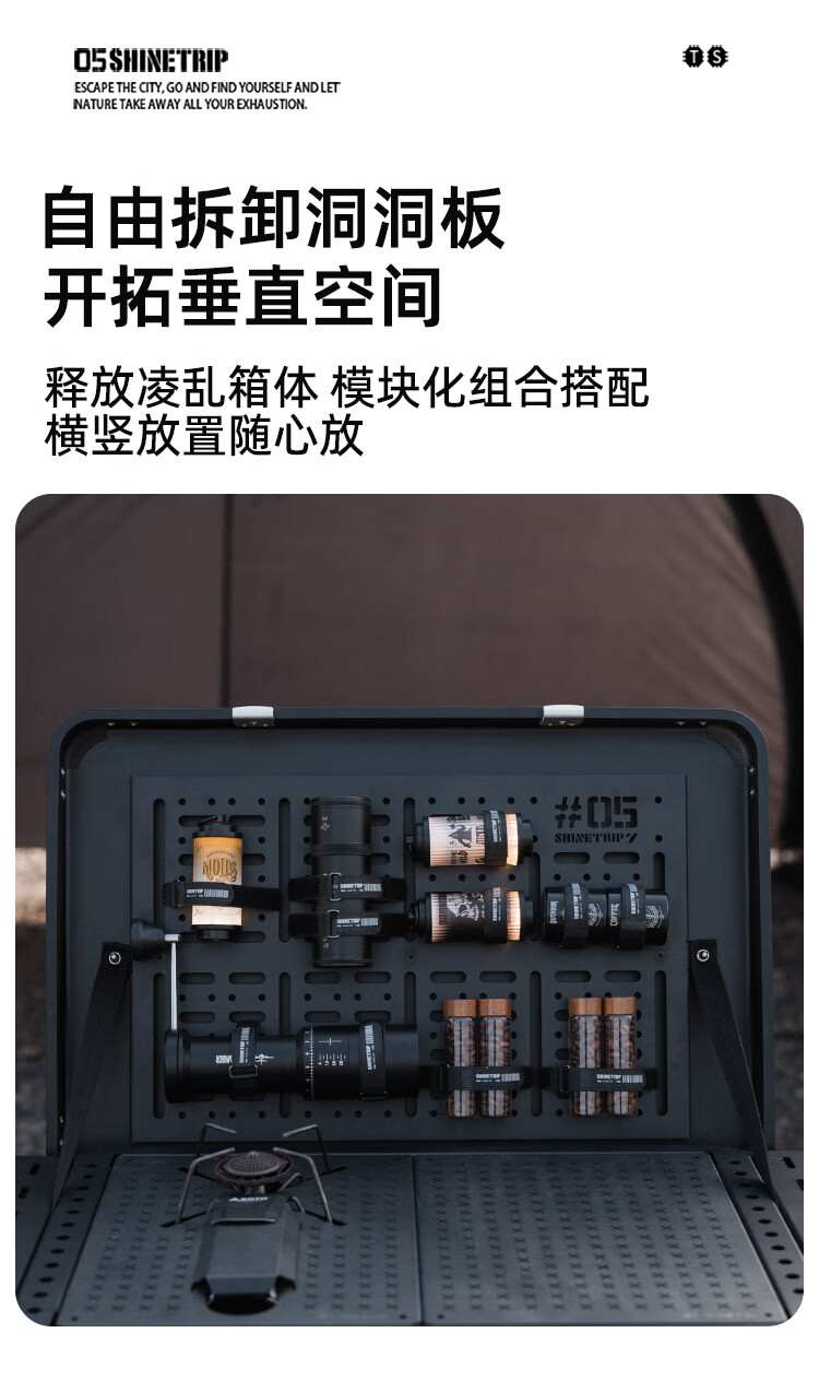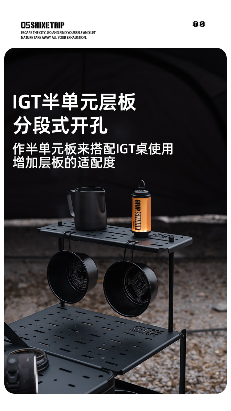 山趣(ShineTrip)户外05系列暗翼IGT战术折叠桌露营桌便携多功能铝合金多用途桌 折叠桌+茶盘+洞洞板*2+层板(不含工具炉具杯具灯)