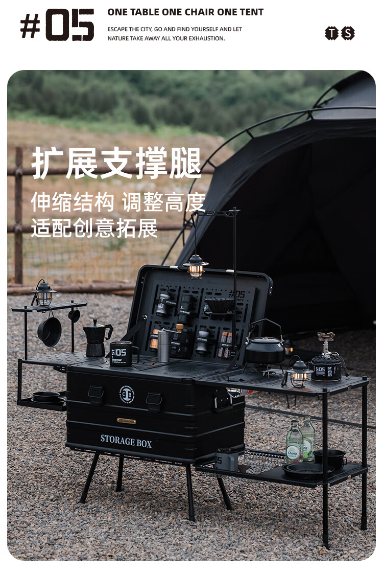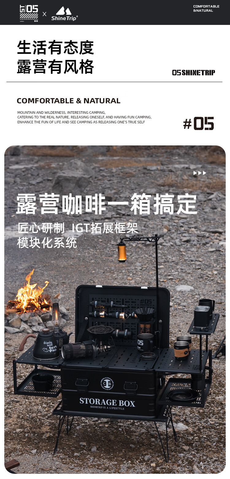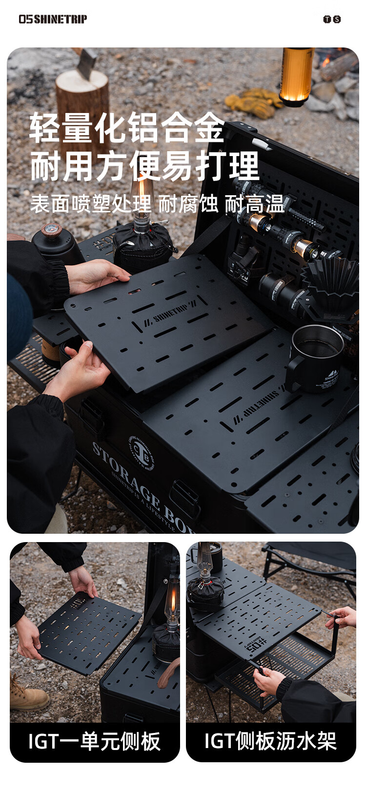 山趣(ShineTrip)户外铝合金收纳箱野营杂物自驾车载防水大容量露营IGT咖啡箱 战术侧边桌(可作IGT一单元板)