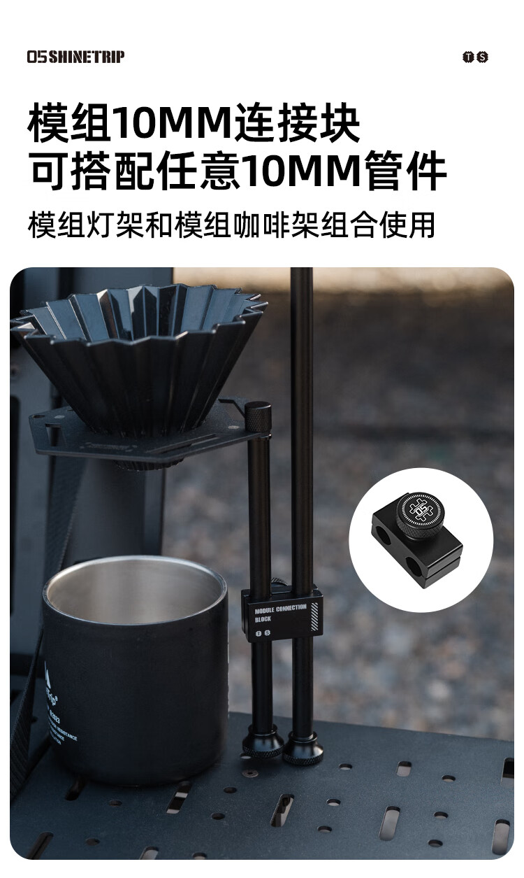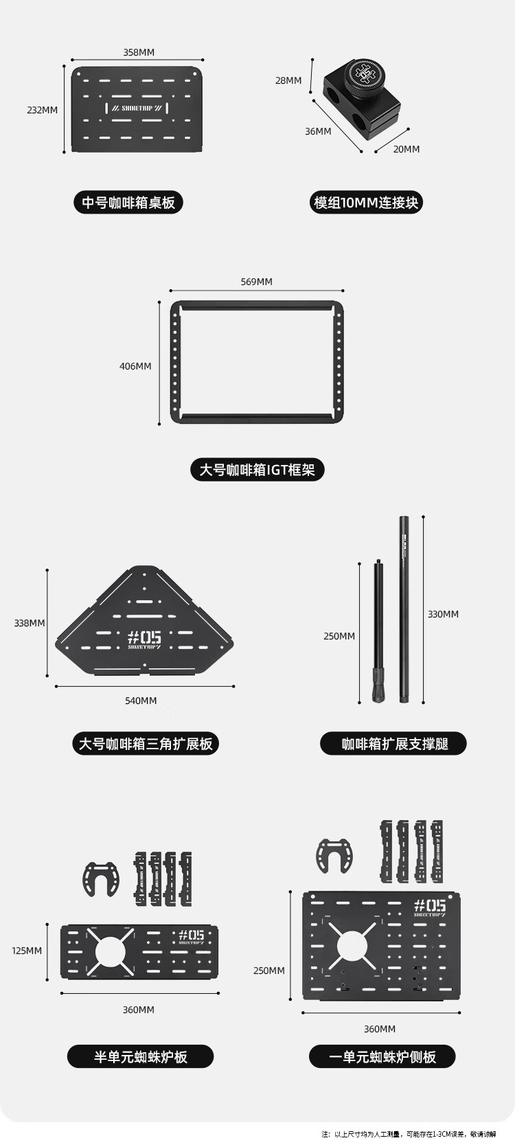山趣(ShineTrip)户外05系铝合金战术滑板桌黑化露营多功能便携IGT可拓展置物板桌 滑板桌套装-大号L+单元板*3+灯架*1+咖啡架*1+底板*1