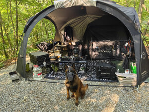black dog黑狗户外黑胶穹顶天幕露营超大空间防雨野营过夜可拓展组合车尾帐 异想迷城-穹顶帐 展开尺寸:435*435*240cm