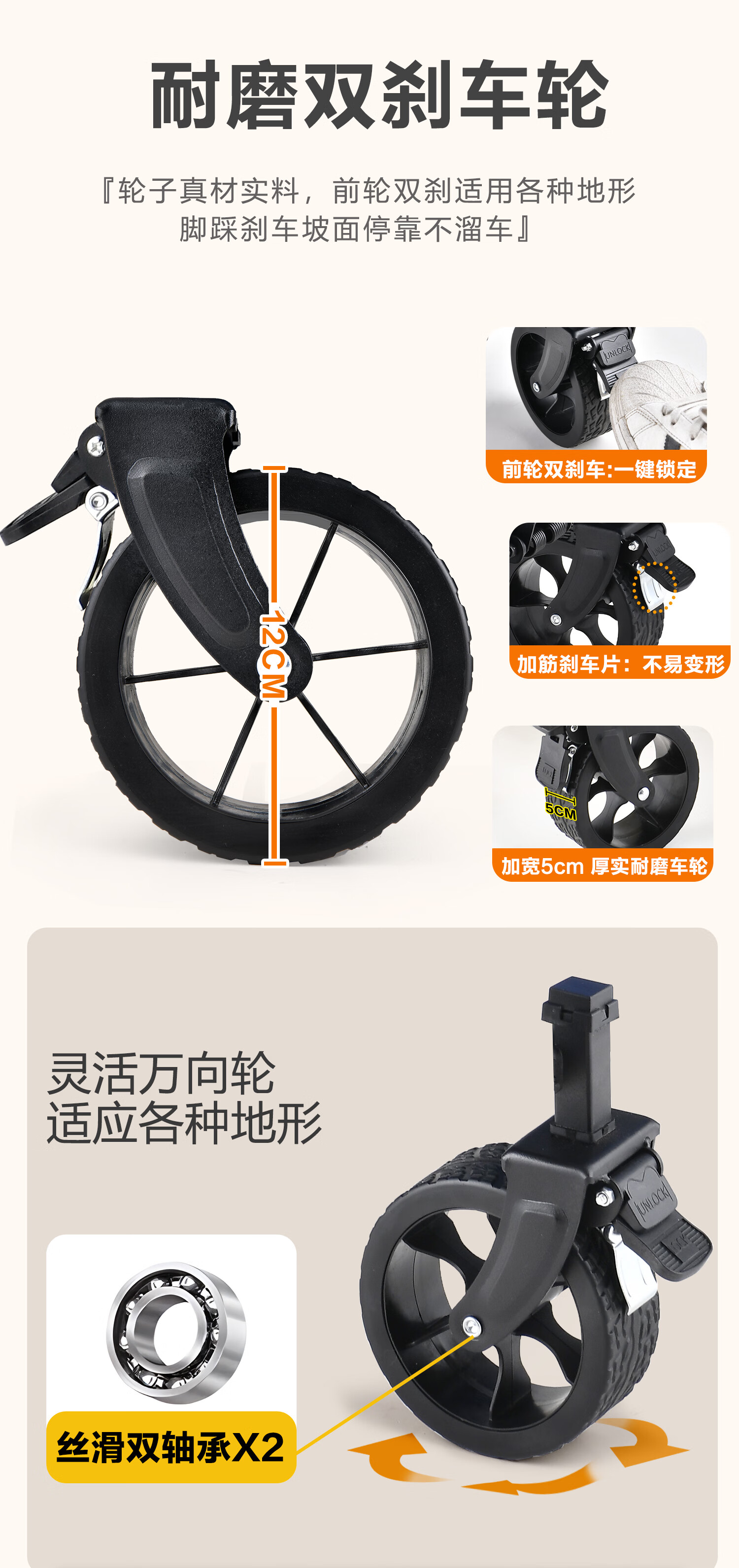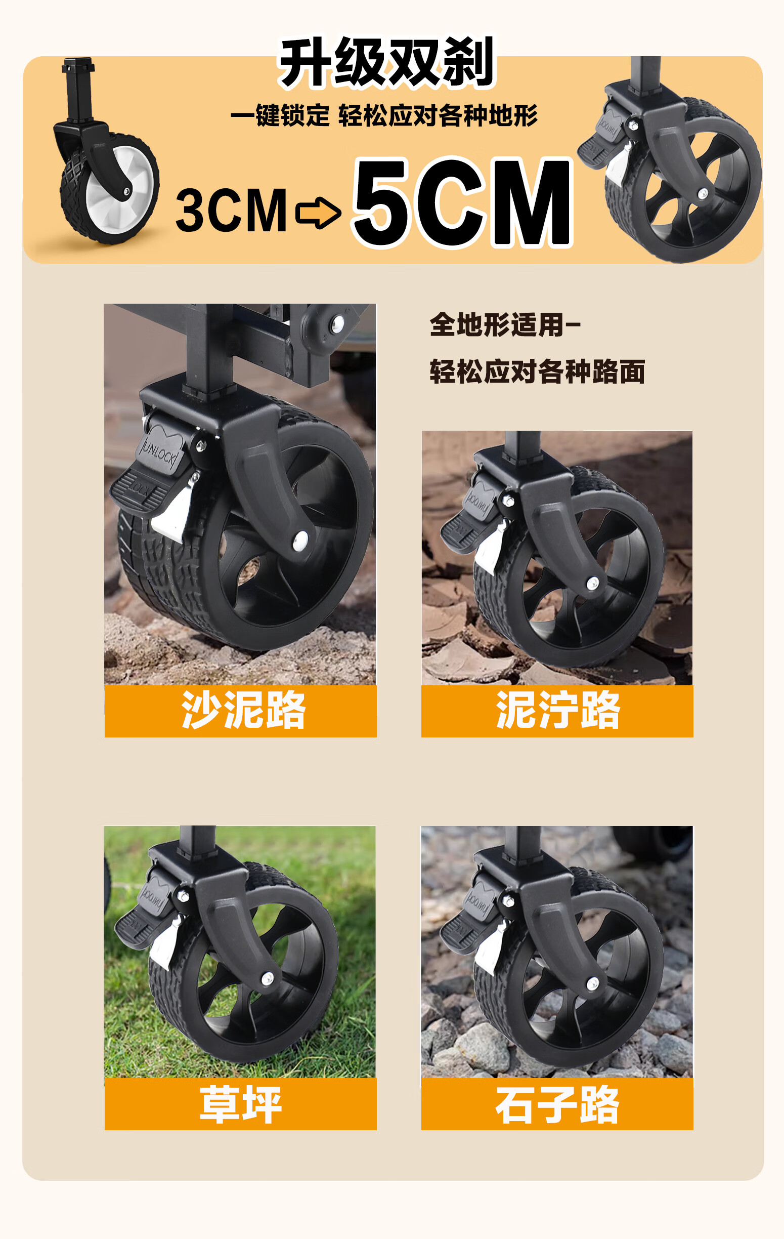 好喜欢这个设计,刹车功能真的很实用,拉起来特别稳当。整体很轻便,收纳也方便,出门露营带着完全不费劲,性价比超高,推荐入手