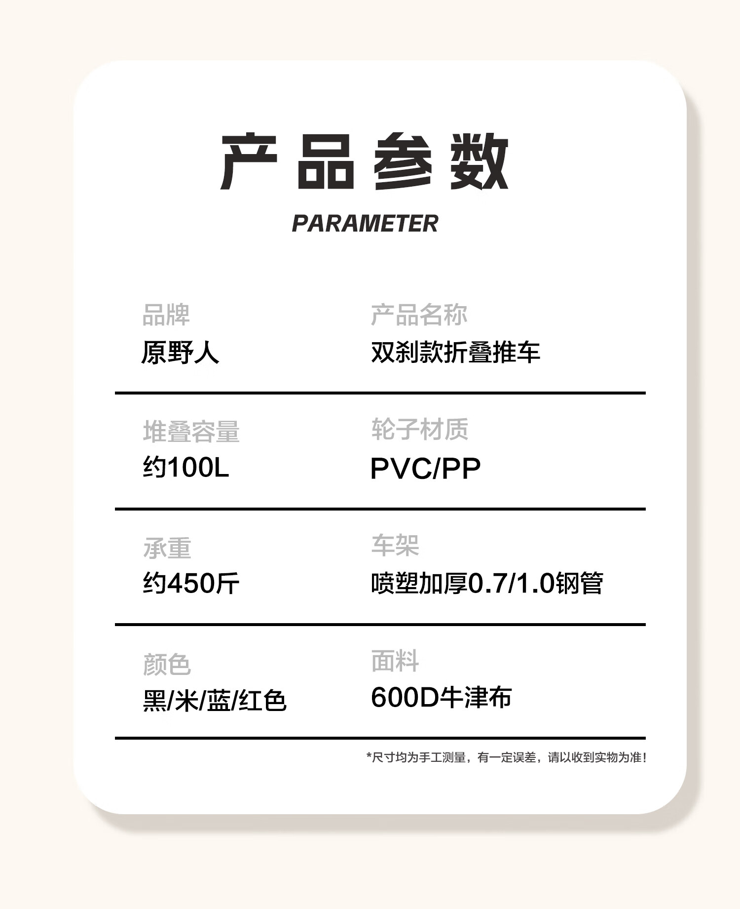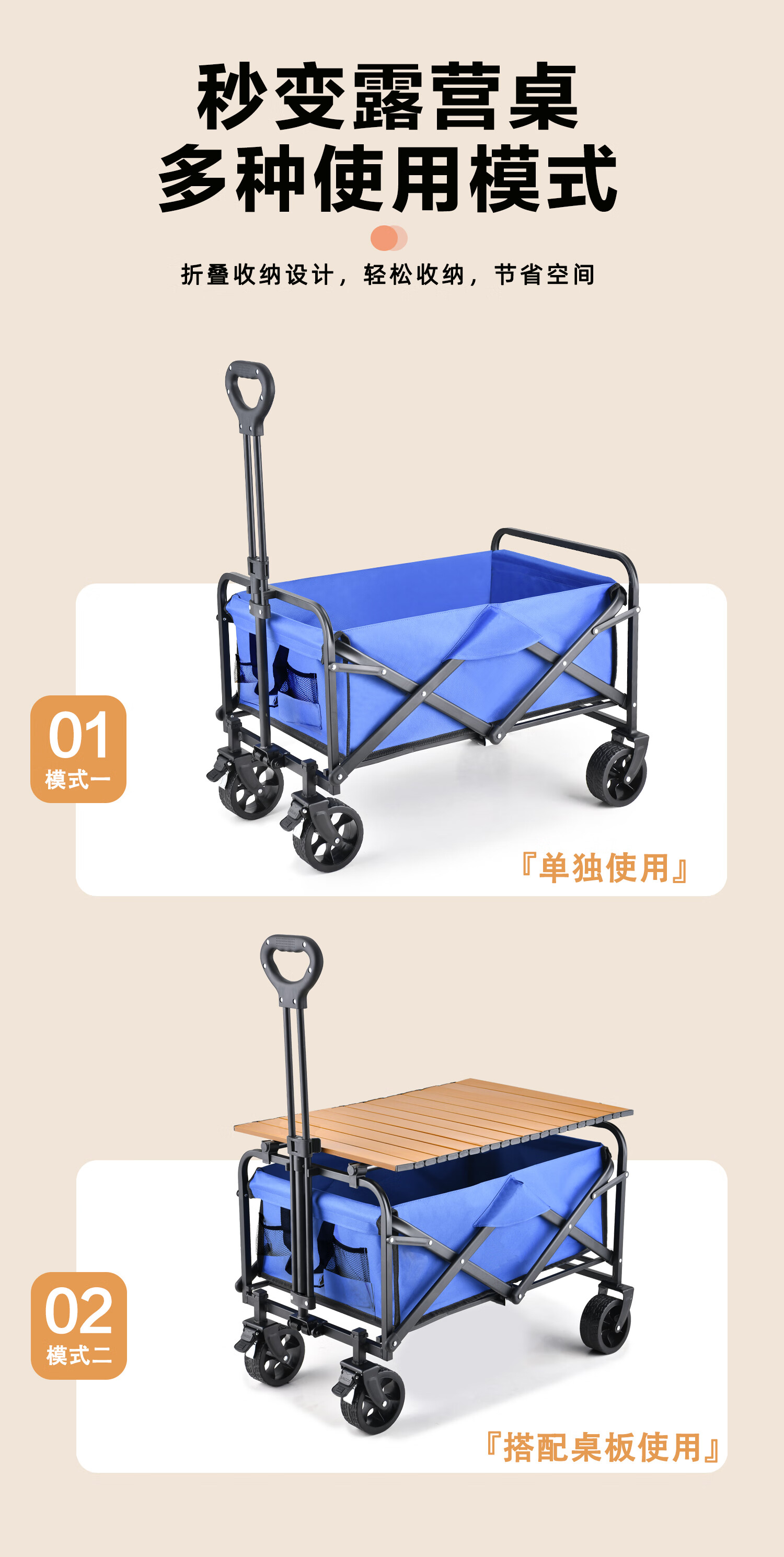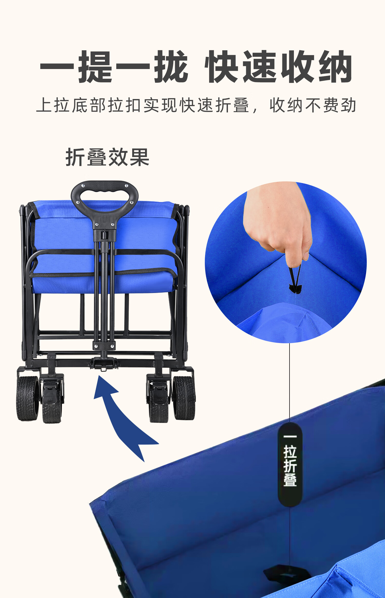 特别喜欢这个,折叠起来不占地方,带出去露营超方便。轮子顺滑,拉重物也不费劲,布料结实耐用。轻便出行真的省心,装东西多还能保持稳定,性价比很高。
