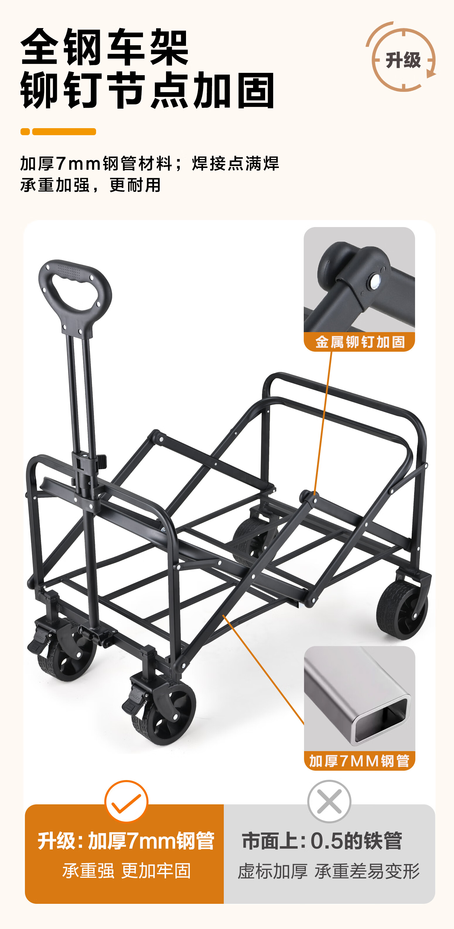 做工很到位,轮子拖起来特别顺滑,装东西也方便。带出去露营几次了,拉重物完全不费劲,收纳起来也不占地方,性价比真的高。