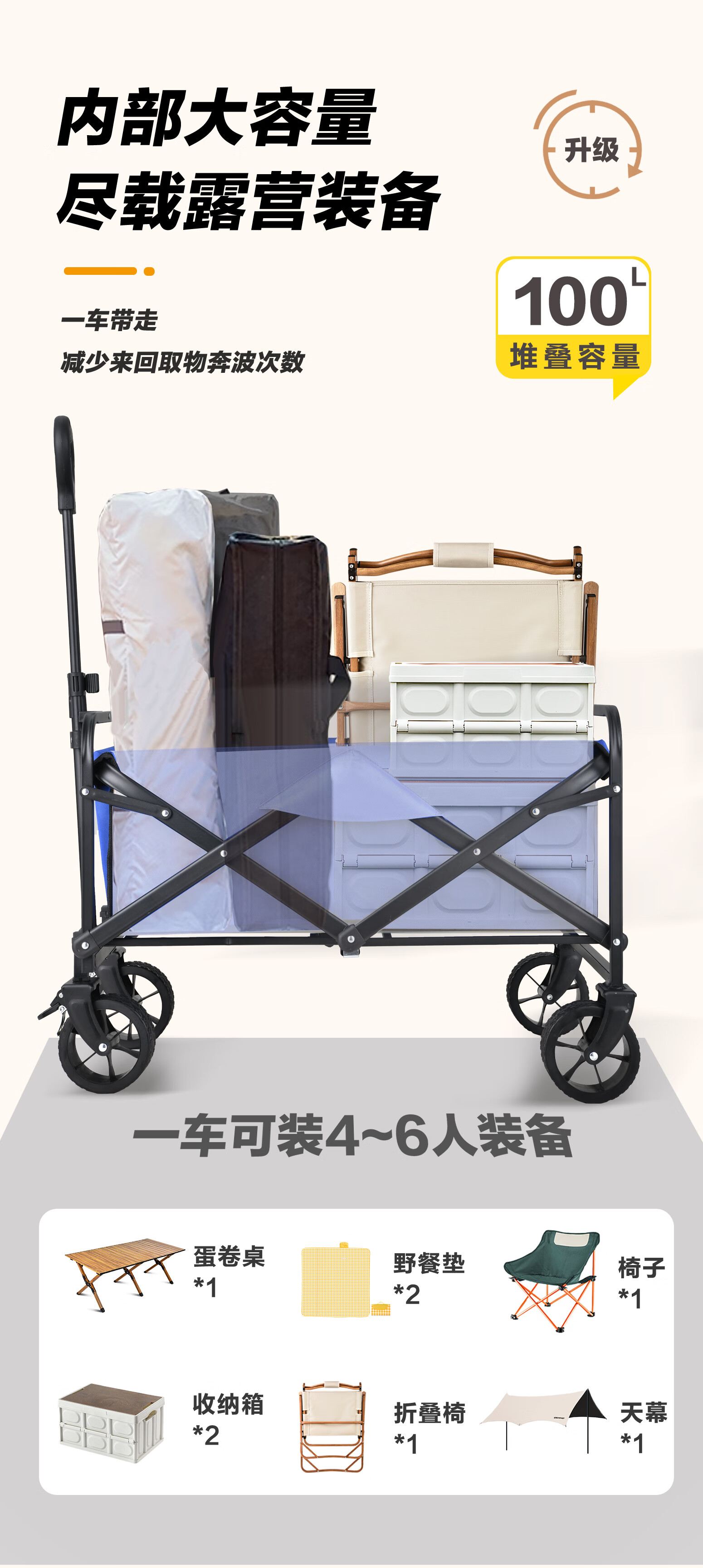 五星好评赞赞!这款营地车真的超省力,折叠方便,出门露营带着它轻松多了!