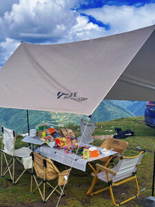 这套户外用品很不错,感觉最美的就是这四把椅子,设计的太漂亮啦,拿回来之后我们在一起争着坐一坐,很舒服,天幕的地钉设计人性化,保护性设计不扎东西。很方便,天幕质量也不错,还没有展开,等有机会再来追评,小推车还可以用来买菜。