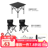 清系户外折叠桌便携式露营桌子野餐桌椅套装野营用品装备蛋卷桌露营椅 加厚黑色方桌三件套