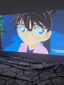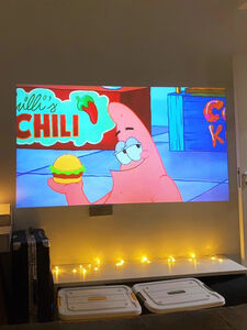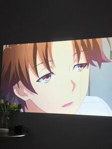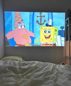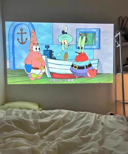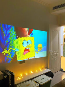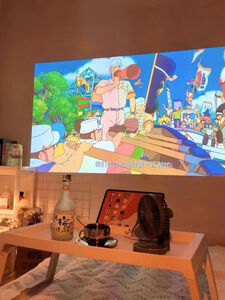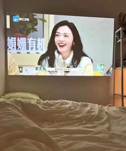 在租房白墙上投屏观看的 条件有限 就随意摆在行李箱上面的 体验感很好 很有幸福感 这个机器可以买 强烈推荐