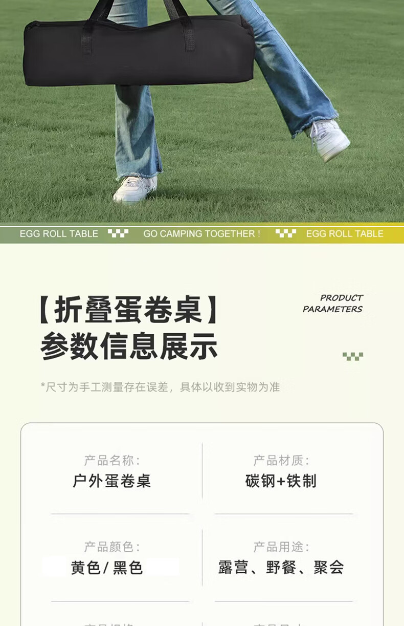 探险者蛋卷桌户外折叠桌便携式露营桌椅套装家用茶几桌椅野炊全套装备 120cm磨砂黑折叠蛋卷桌+收纳包