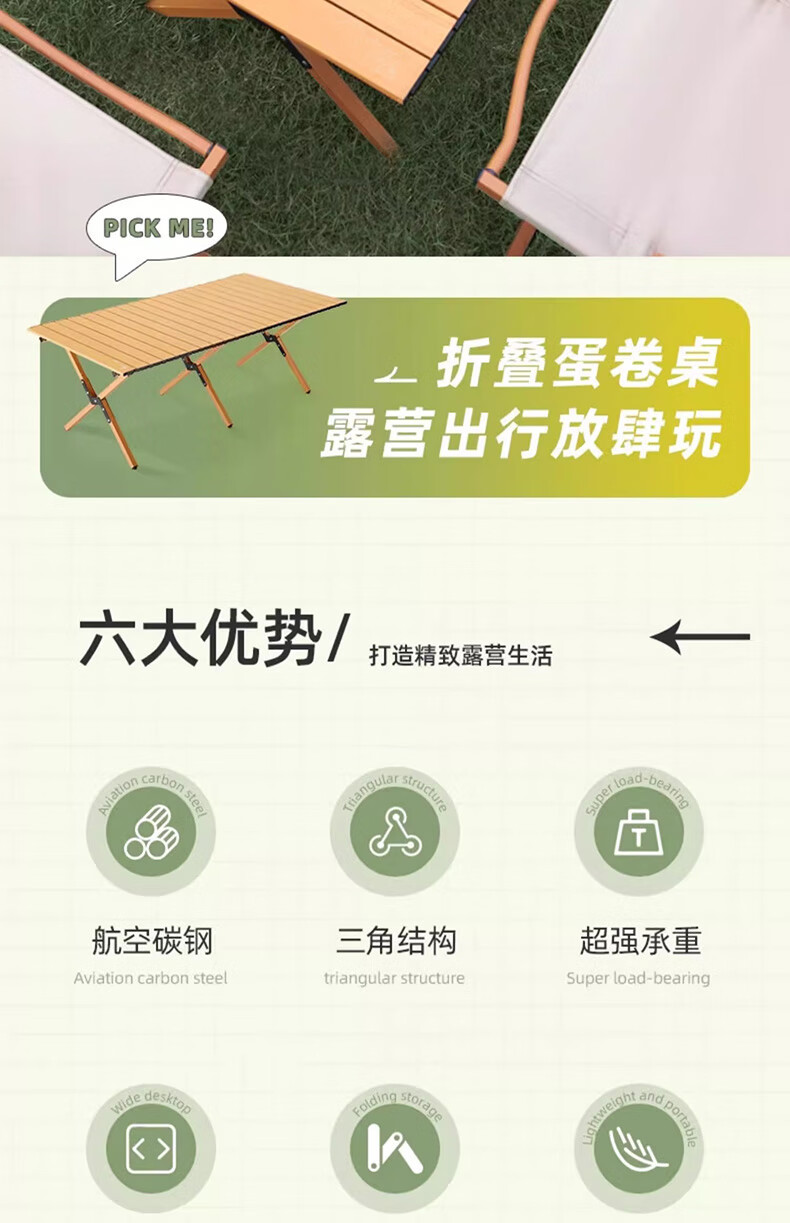 东西不错,木纹质感很自然,户外用起来挺有氛围。收纳方便,重量适中,携带不费劲。性价比高。