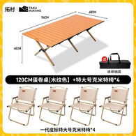 拓村户外蛋卷桌便携式折叠桌野餐桌椅露营装备用品野炊野营套装 1桌4椅丨深卡其120cm+特大克米特椅*4