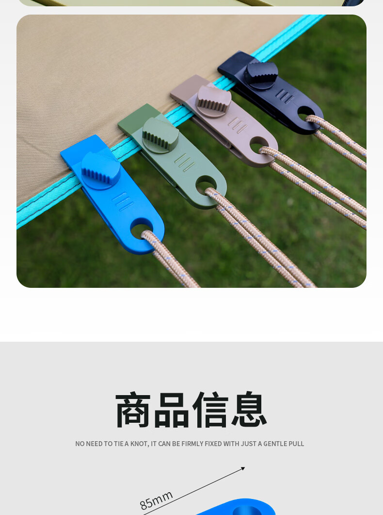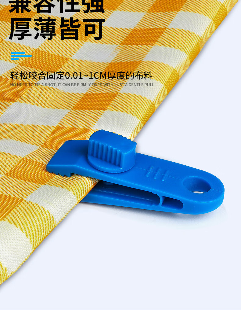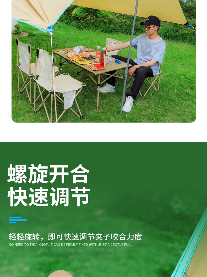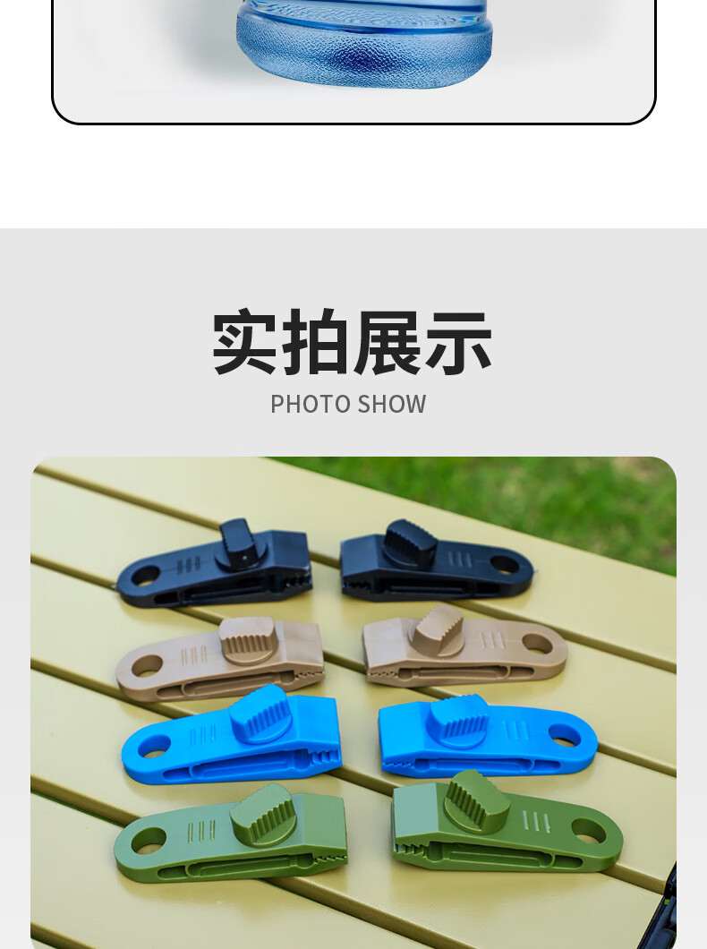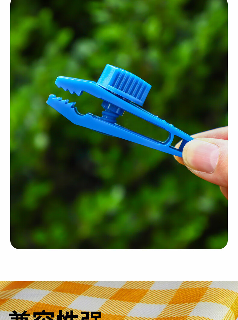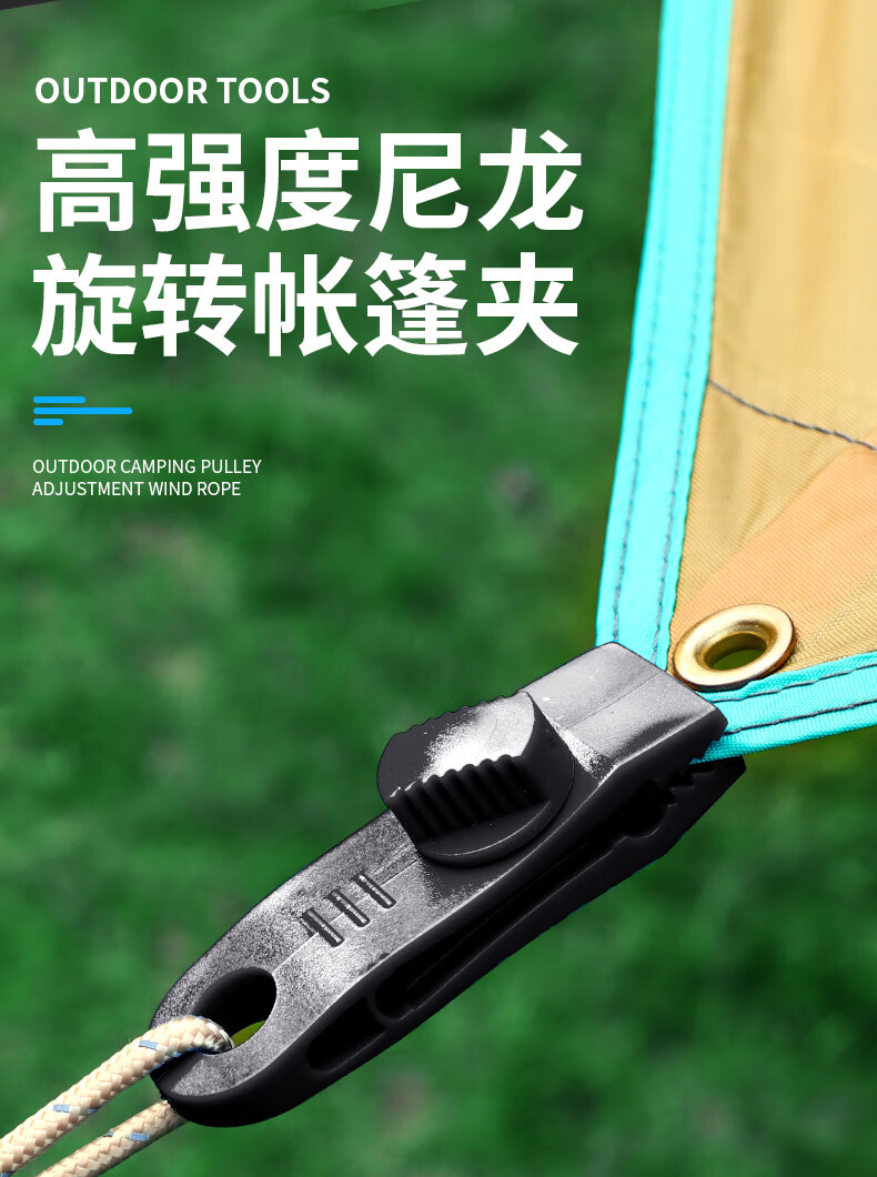 这夹子真心说,真不错。风大天幕翻滚,在天幕的边上扣上几个。绳子一拉,太好了。这黄色在发货途中包装破了丢了3个,客服说今天尽快安排补上,过几天自驾要出发了。