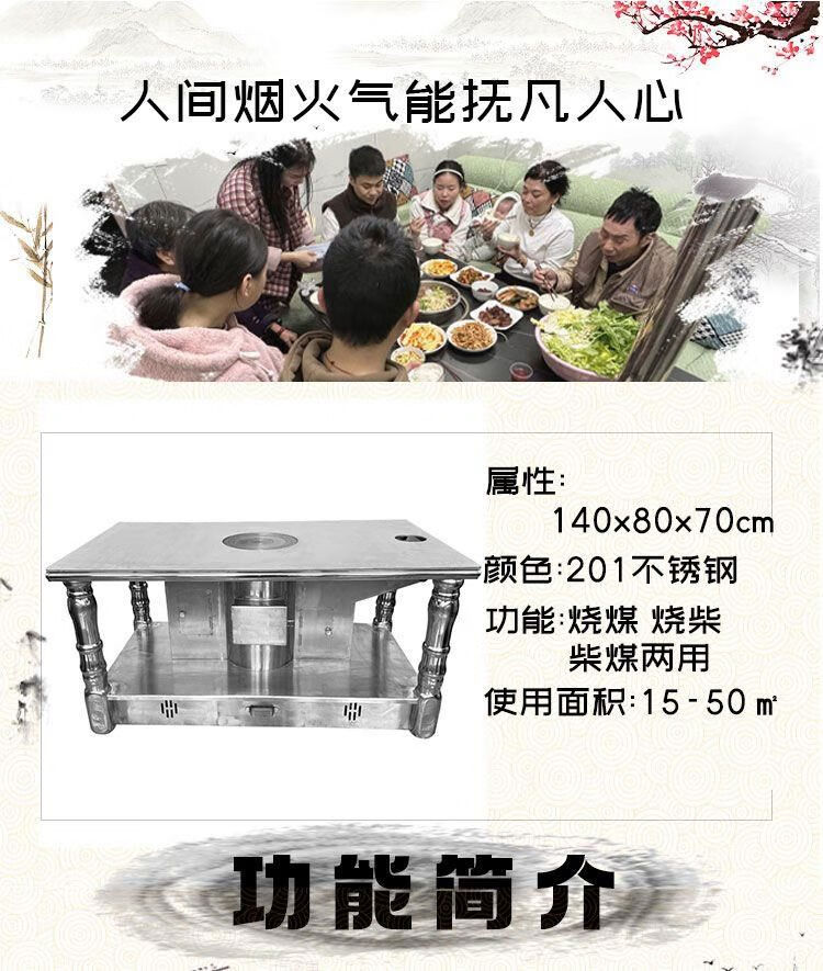 三栖虎贵州农村回风炉烧煤柴两用无烟室内取暖不锈钢烤火茶几气化 几炉单烧煤面板厚度0点6cm