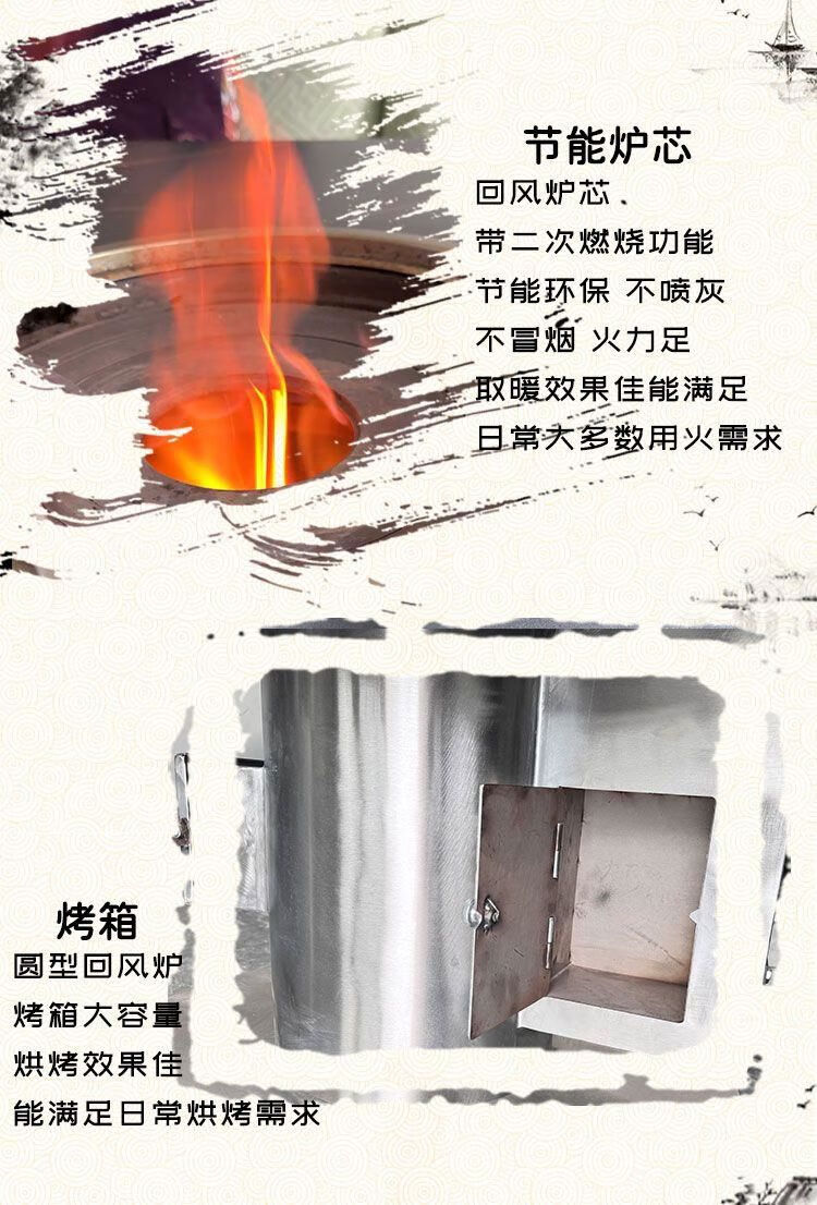 璞灶旺冬季柴火灶加厚加高农村取暖炉烧柴家用节能柴煤两用多功能回风炉 1米圆桌不锈钢(柴火炉)
