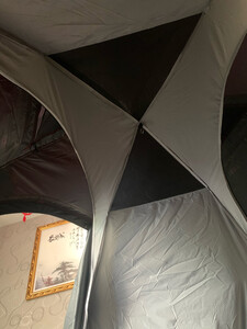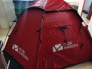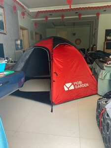 买回来就装起来看效果,很不错,钻到里买感觉很安心,但是这款太笨重了,这都还好,唯一不太喜欢上面印了多余的字。 防水效果:有待测试 适用场景:户外,高山 容纳人数:两人 透气效果:需要打开内帐和边角裙摆,不然的话还是满闷的 展开类型:六角圆顶 便携性能:携带不方便,拆装能一个人完成