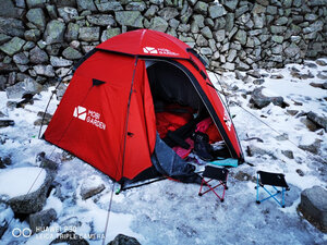 十一秦岭主峰,太白山大爷海露营,海拔3700+。效果真的棒,早上起来外帐都一层冰,内帐里还是水珠。估计夜间有零下十几度。 防水效果:帐篷在冰雪上扎营,防水不错 便携性能:这个高山帐篷比我的新冷山确实重不少,重装的压力不少,不过这个重量对得起这个效果,按需求自己得注意选择帐篷。