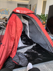 全网都找不到任何详细介绍的黑森林130帐篷,自家客服都搞不清的神秘帐篷,本人是第一批小白鼠,有幸和大家分享心得。贵是真的贵,冷山系列最贵的可以买两个咯。我买来是摩托旅行用的,要经常露营过夜,这款帐篷很符合我的需求。遮光很好,防风效果好,甚至是有点不透气的。安装也还好,穿三根杆,十多分钟就安好了。内帐不能单独用,是挂在外帐上用的。地垫只有一小张,刚好垫在内帐下面,单独买全铺的地垫还没有完全适配得,六边形最长内直径280mm,和商家数据完全不同的。内部空间挺大的,取下内帐在帐篷里做饭也没问题。缺点呢红色的颜色也是担心野外碰到牛啊这些动物,宣传的什么DAC扣件啊,挂钩啊,拉链啊看着用着都很一般,并没有特别好的样子!但都能用吧