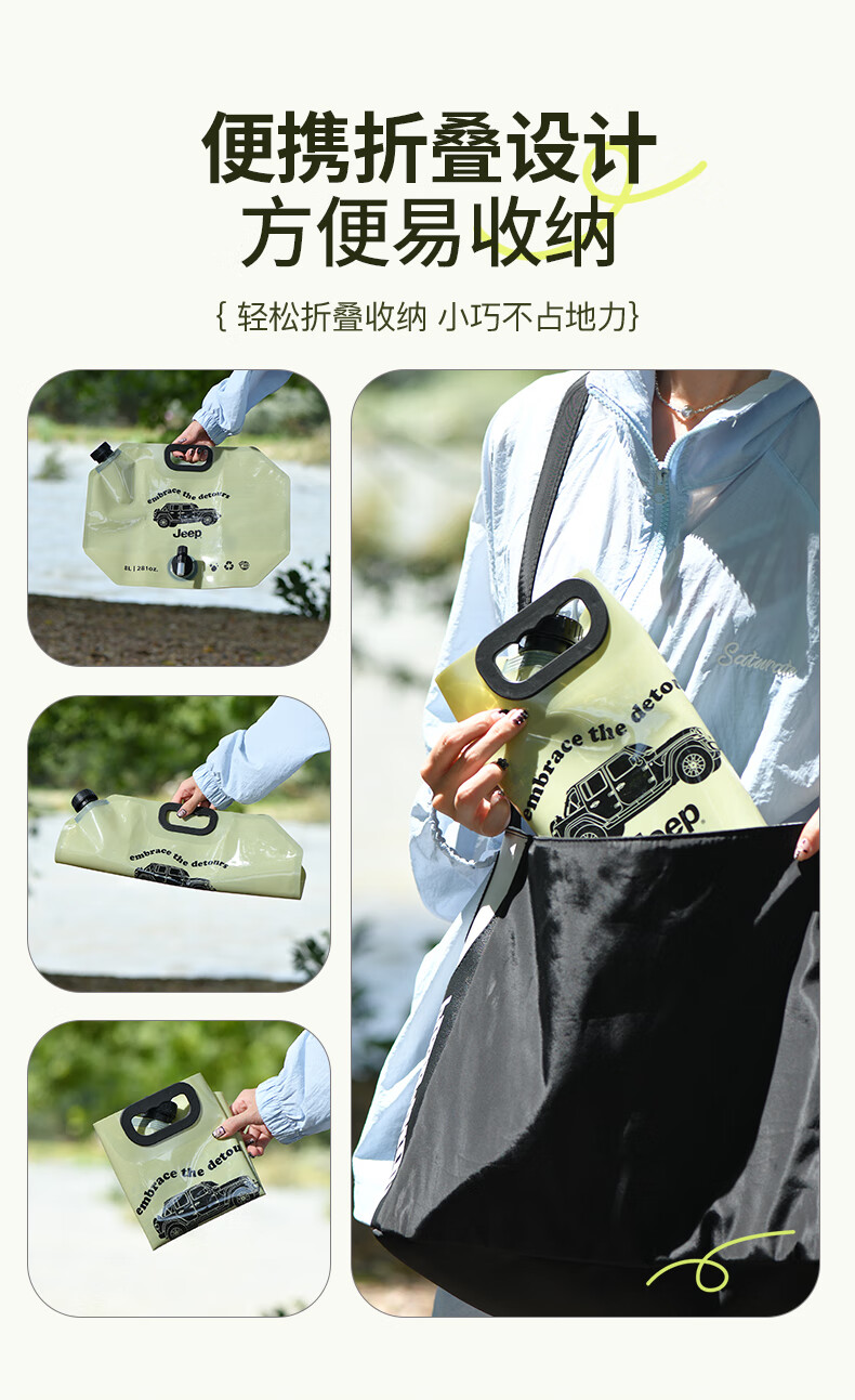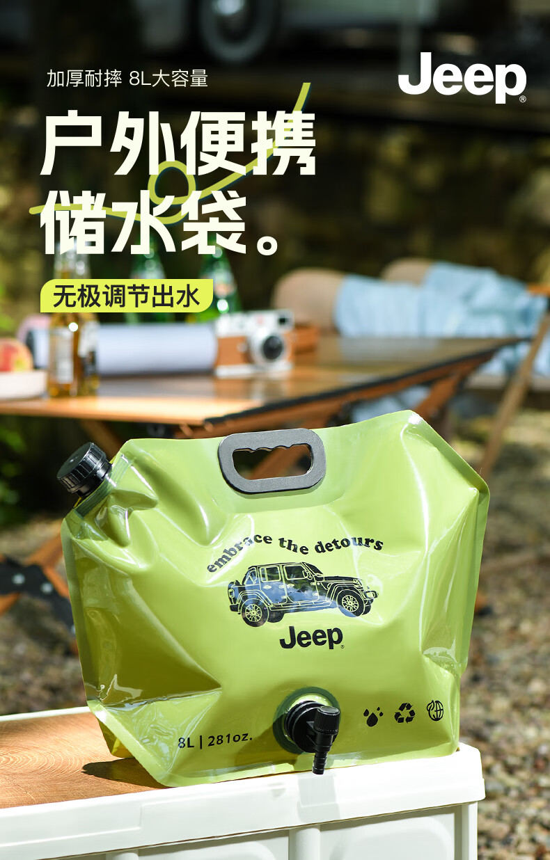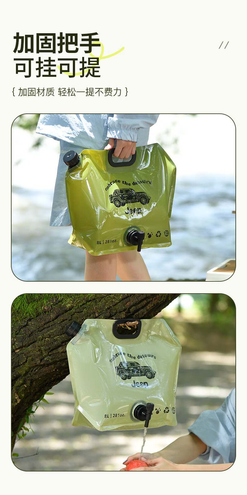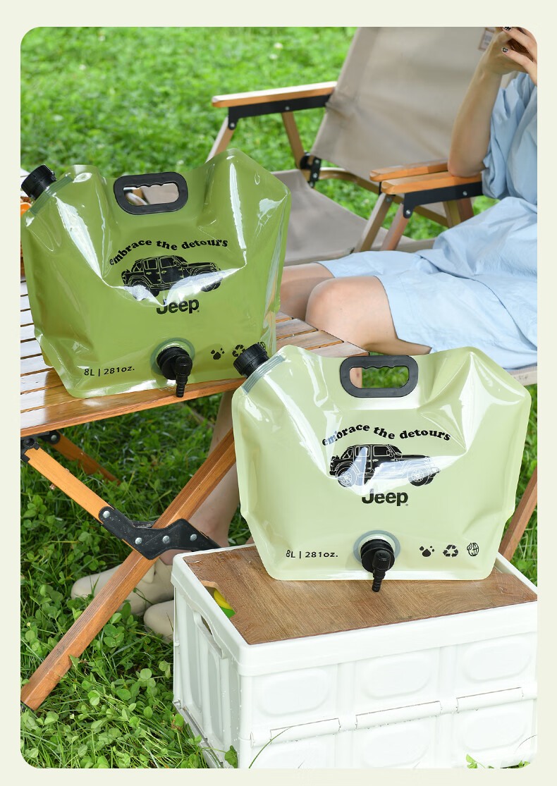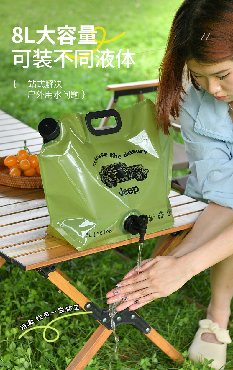 JEEP水袋户外便携折叠式大容量加厚软体储水袋带龙头露营自驾车载水囊 【浅绿色】8L*2大容量无极水龙头