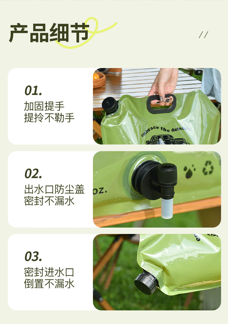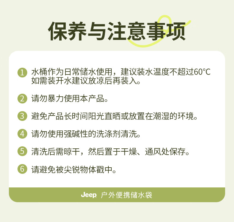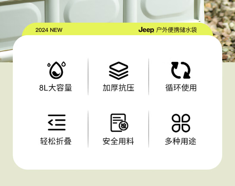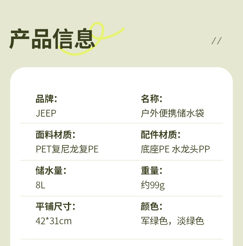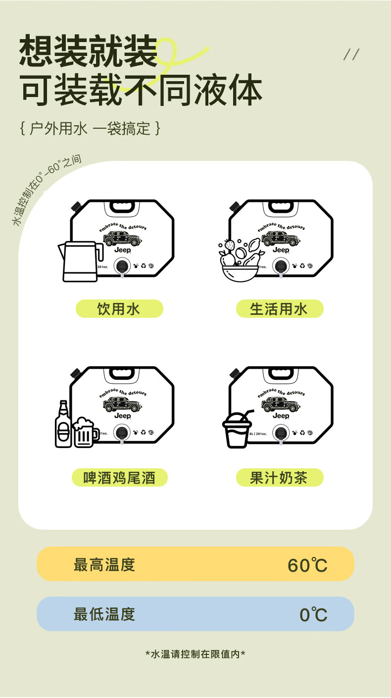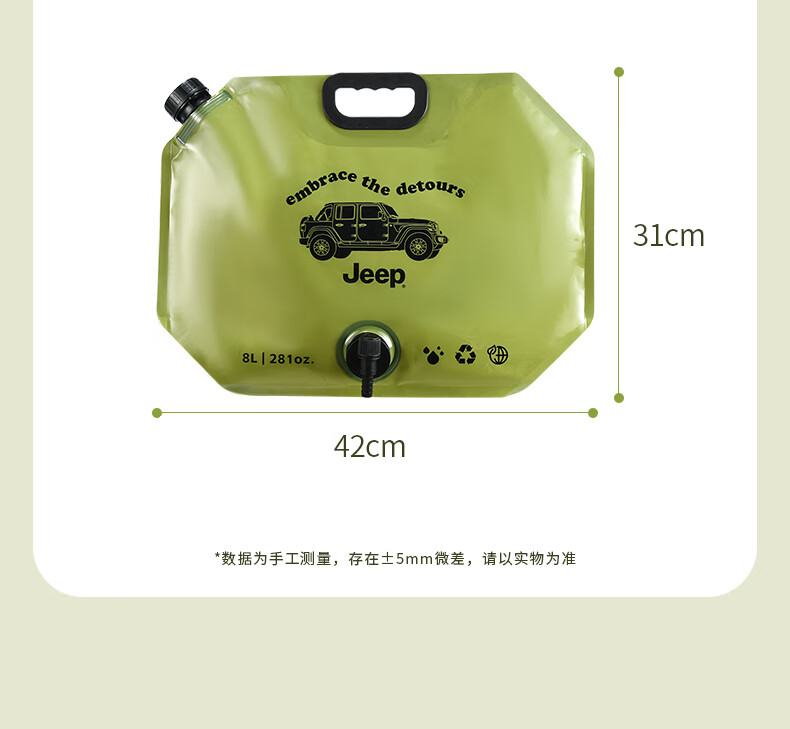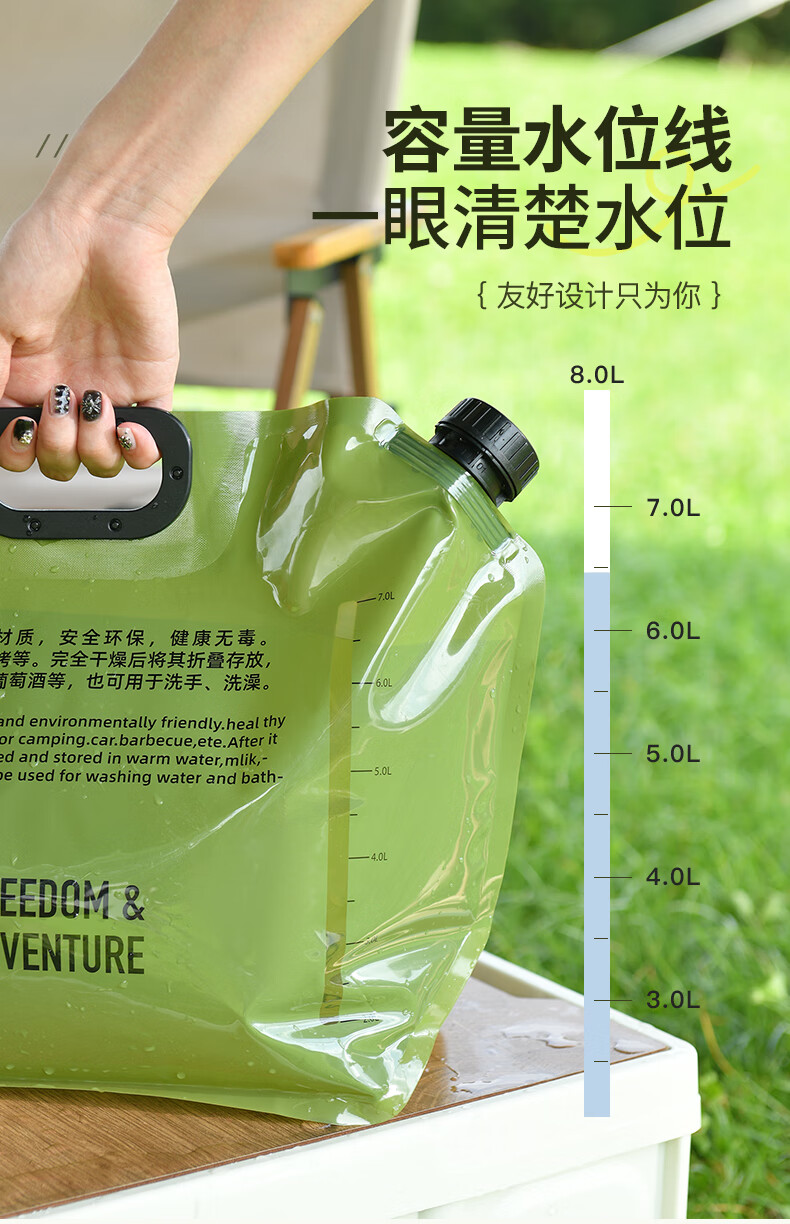 JEEP水袋户外便携折叠式大容量加厚软体储水袋带龙头露营自驾车载水囊 【浅绿色】8L*2大容量无极水龙头