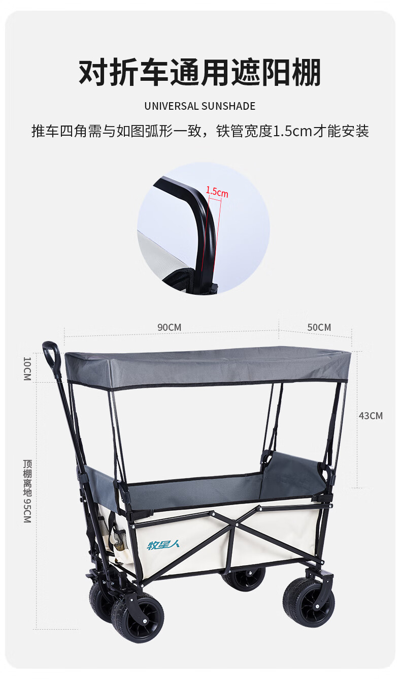襟敞野营车 露营车推杆配件野营车营地车把手车棚顶棚遮阳棚 0L 有刹车 10档可调露营车推