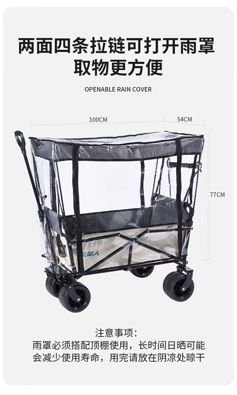 露营车防雨罩配件折叠便携推车野营车营地车蚊帐防蚊罩防风挡风棚 1l 有刹车 1l 手推杆(下单请联 1L