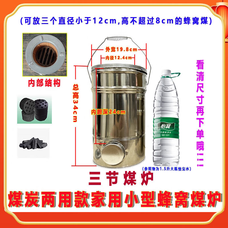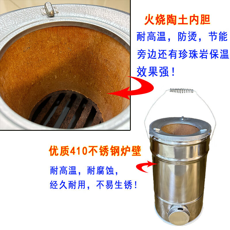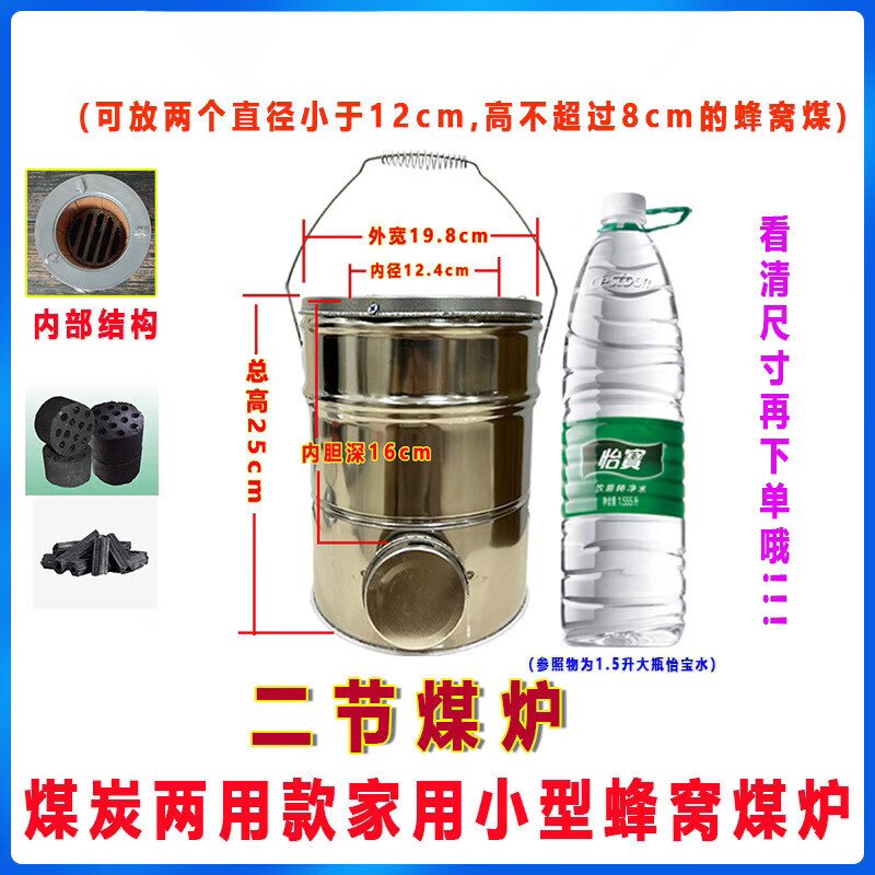 芮帕不锈钢蜂窝煤炉子农村烤火炉小型家用烧藕煤球炉子煎药木炭烤火炉 二节蜂窝煤炭炉+烤网+炭夹+压火
